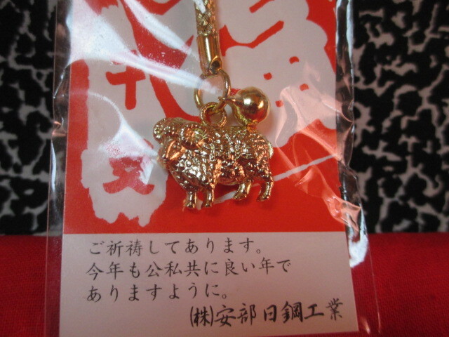 ★安部日鋼工業 魔除けの宝来鈴 干支 未 ひつじ ゴールド ストラップ 新品未開封 開運 招福。サイズ羊・よこ2cm。とても精巧に出来ています。