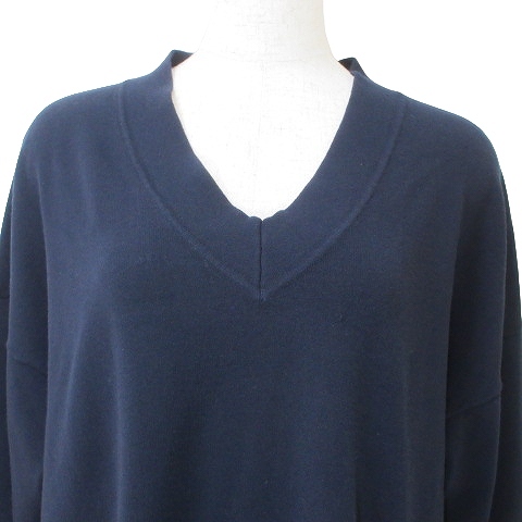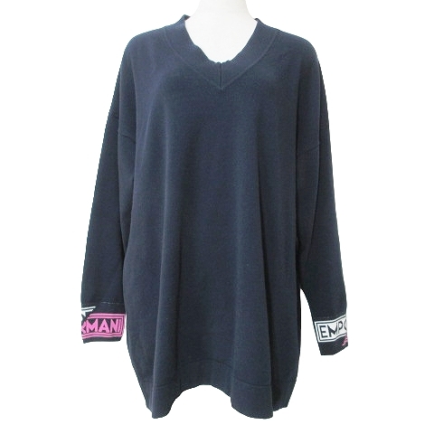 エンポリオアルマーニ EMPORIO ARMANI 長袖 ハイゲージニット 袖ロゴ Vネック ドロップショルダー 日本サイズL相当 EU38 紺 ネイビー IBO58