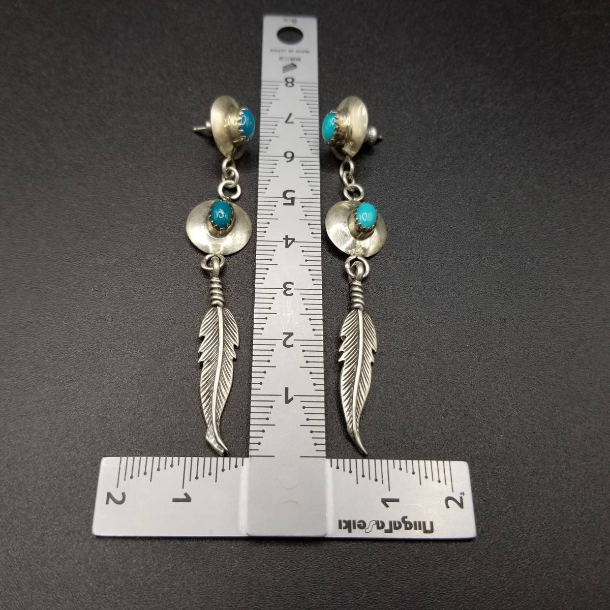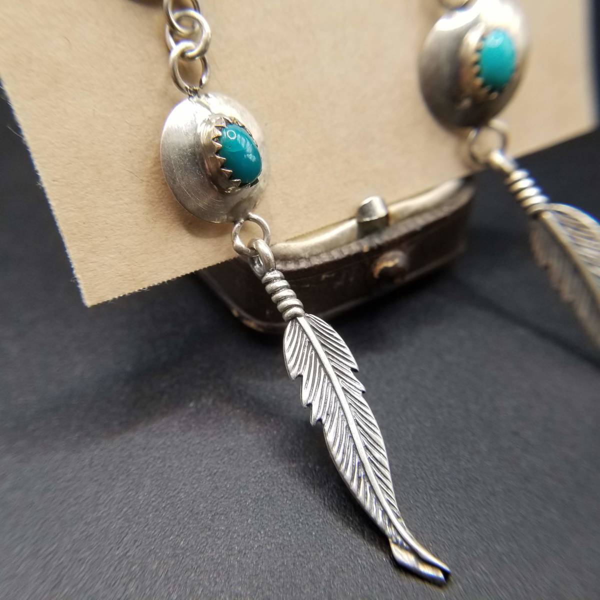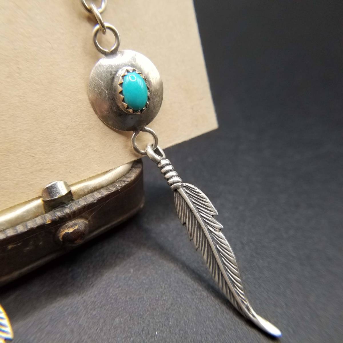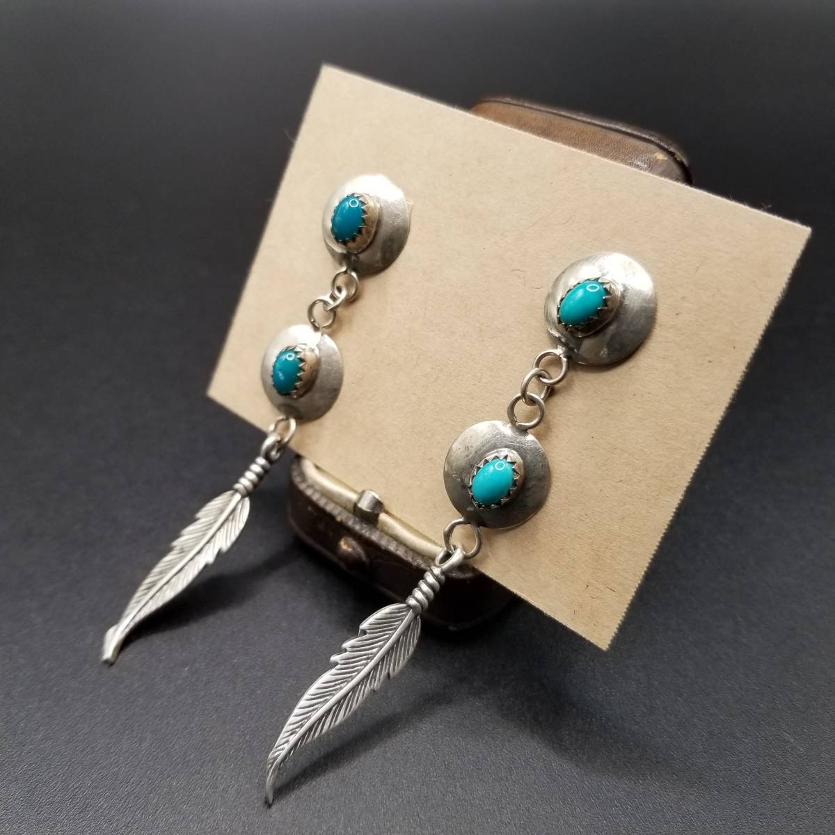 インディアンジュエリー ナバホ族 Larry Sandoval 925 シルバー ヴィンテージ ロング ピアス ターコイズ 羽 装飾 チャーム NAVAJO YMO