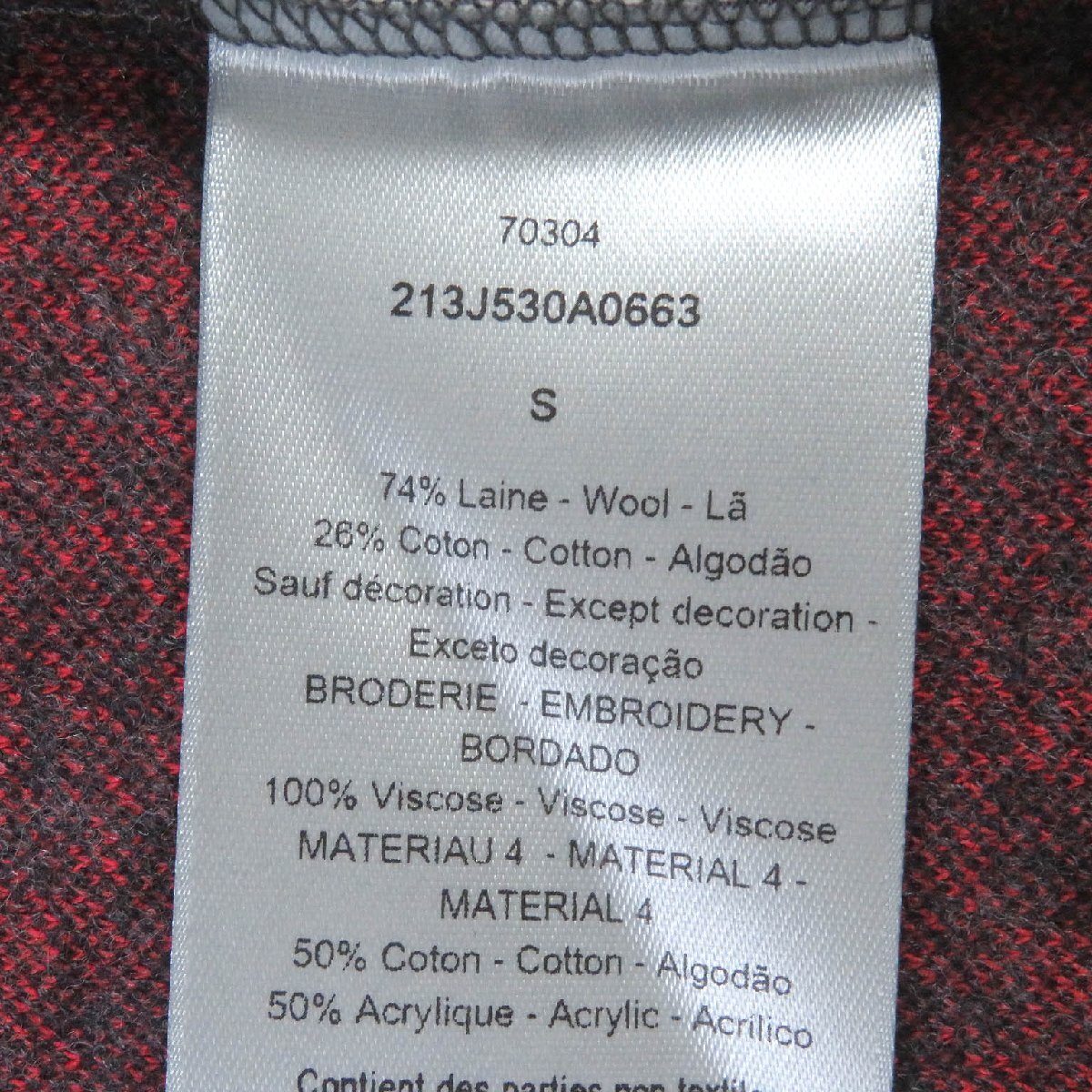 | 素材 (material) | 本体:ウール74% :コットン26% 一部:レーヨン100% :コットン50% :アクリル50% | ||||||||||||||||
