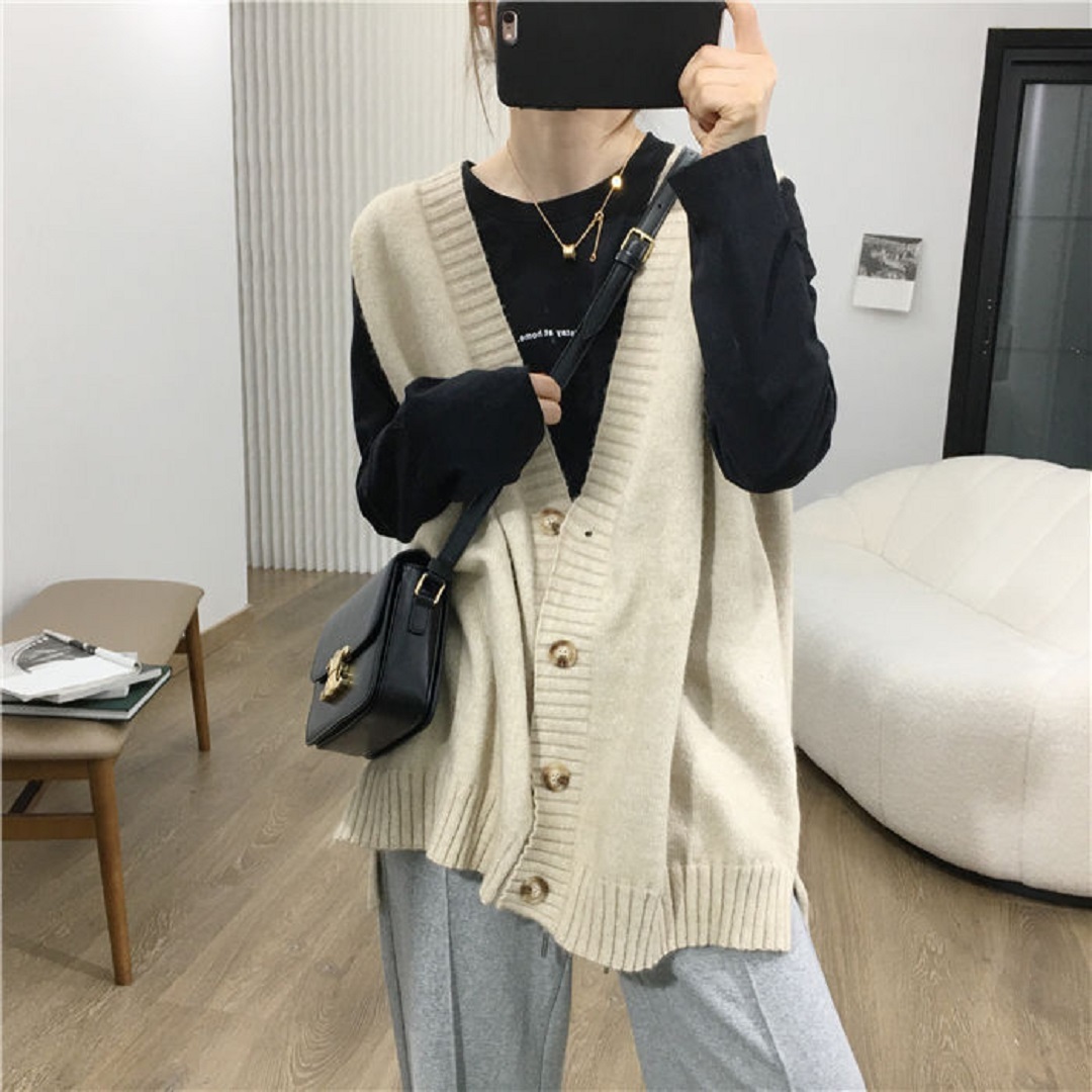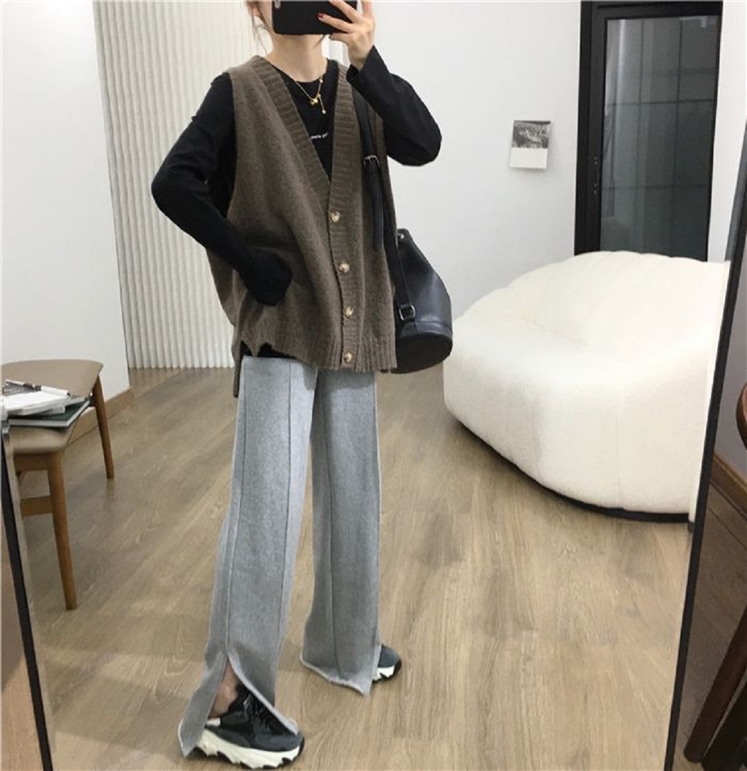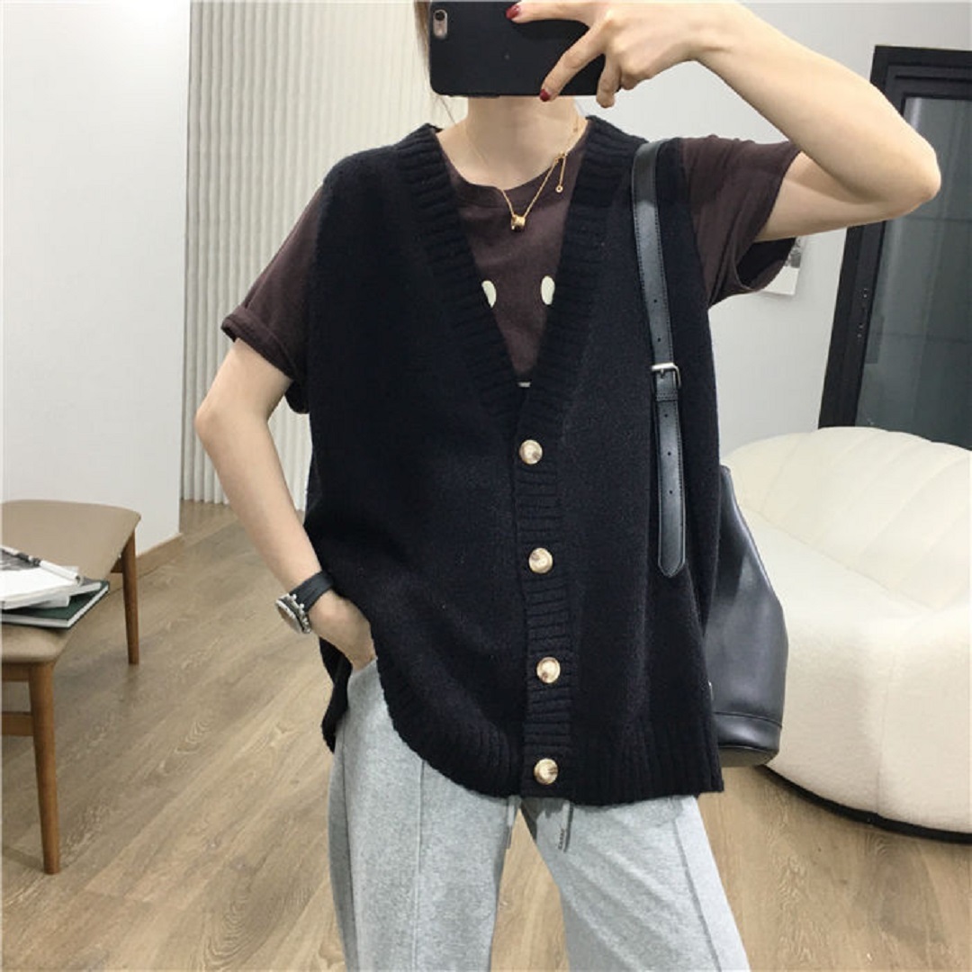 同梱1万円送料無料★ベスト レディース ジレ ニットベスト ニット セーター ニットソー vネック セーター トップスノースリーブ■ブラック