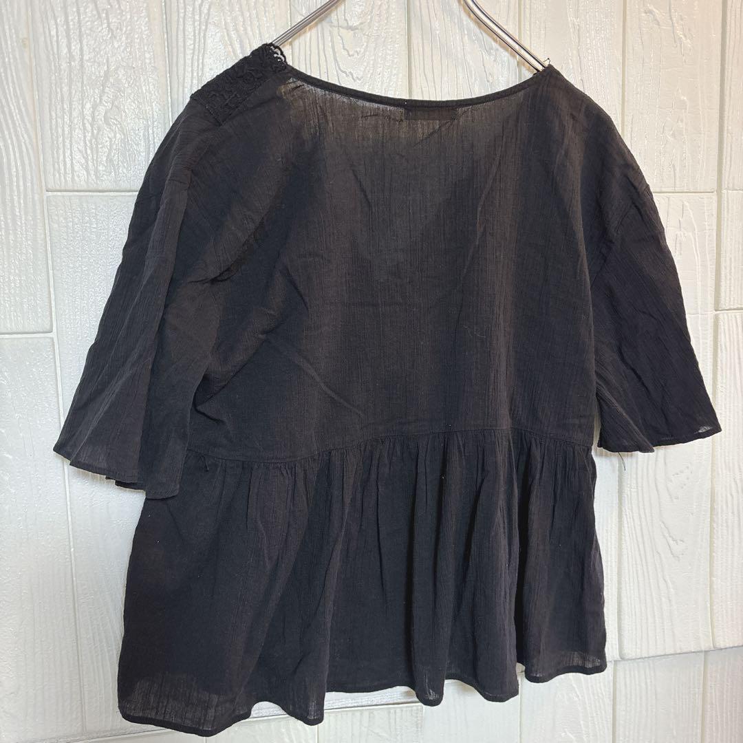 このトップスは、Vネックとレースのディテールが女性らしさを引き立てるデザインです。フレアシルエットで、体型をカバーしつつ、軽やかな印象を与えます。