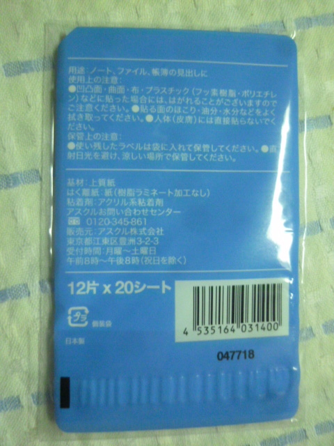 インデックスラベル 青 中サイズ (12片×20シート) ×2P