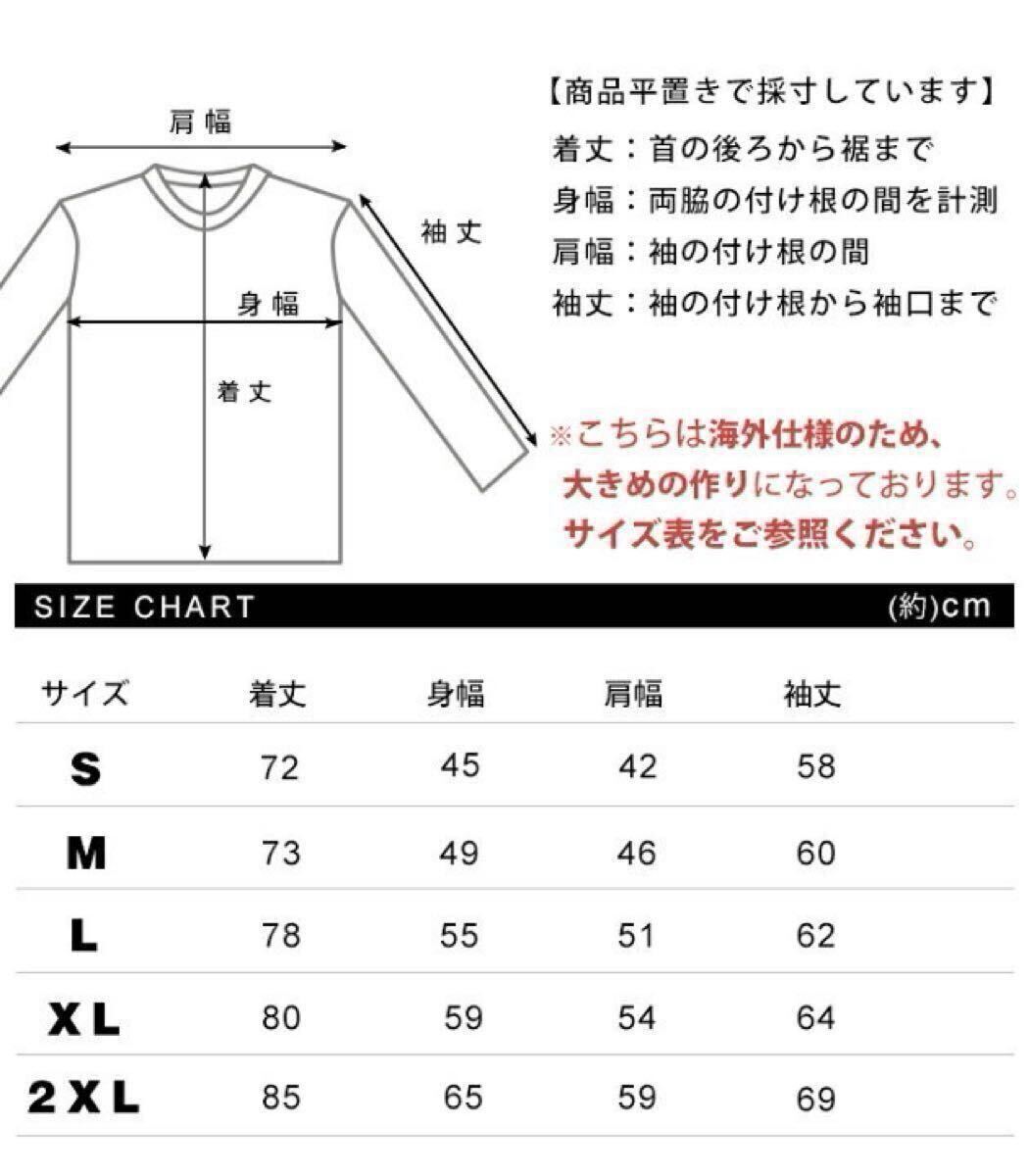 お手持ちのTシャツと記載の大きさ(cm)を比べてご自身で判断ください。
