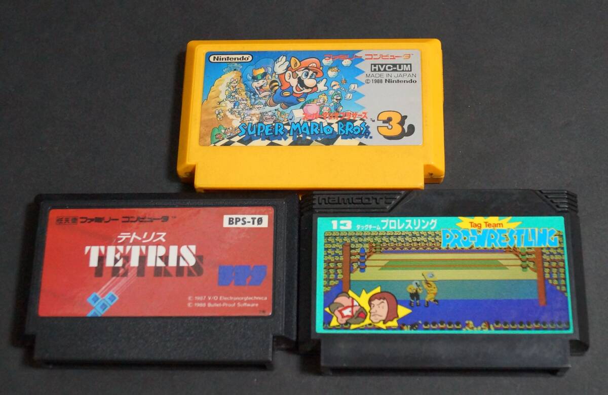 【寂】ファミリーコンピューター ファミコン テトリス プロレスリング スーパーマリオブラザーズ3 動作未確認 現状品 三点セット s61023