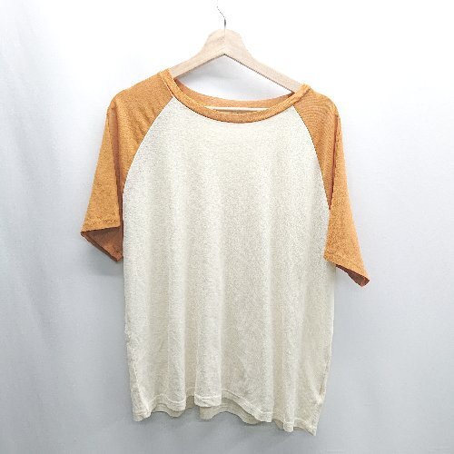 ◇ ⊂ LAKOLE シアー 半袖 Tシャツ サイズLL オレンジ アイボリー レディース E