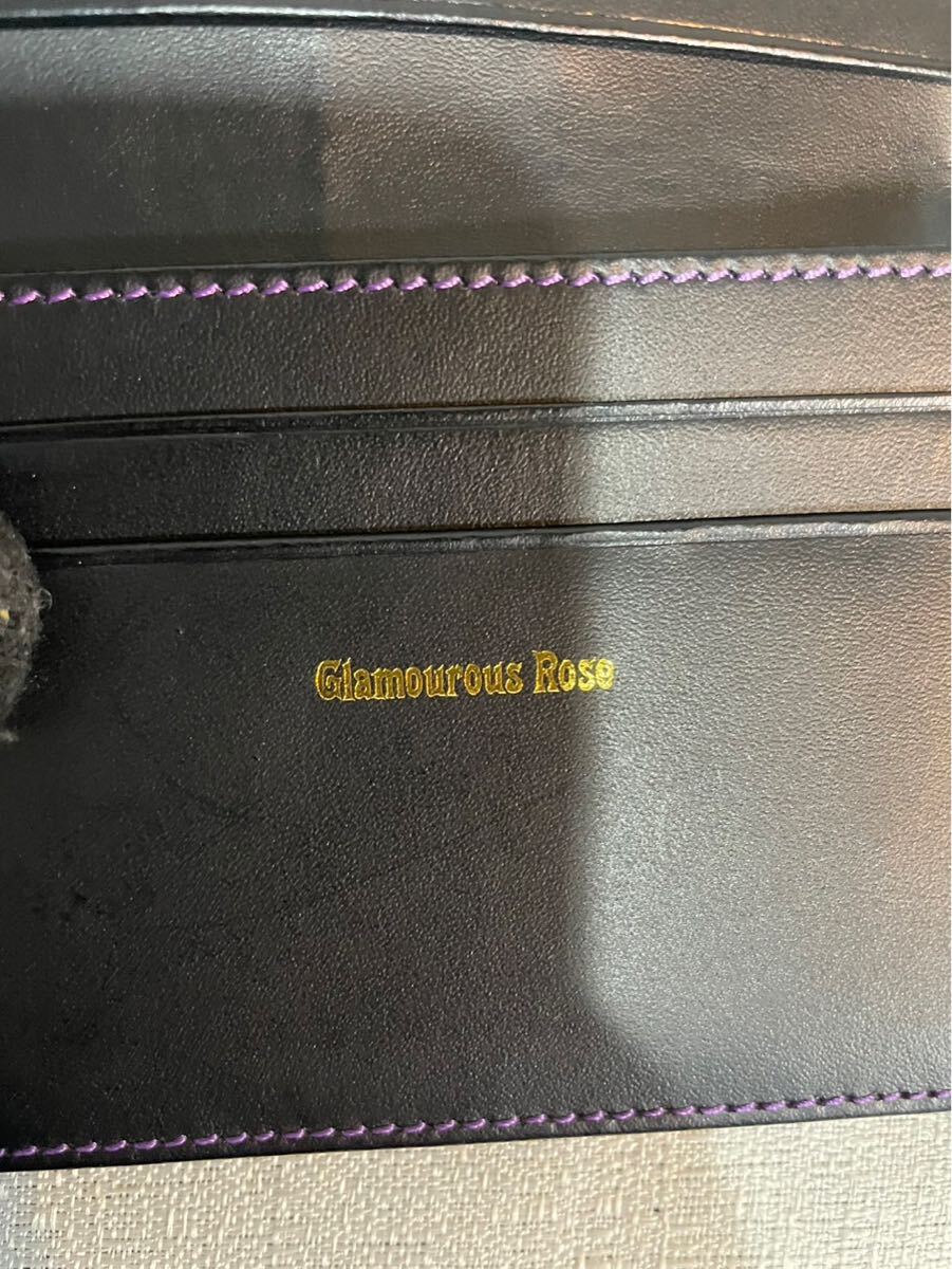 未使用極美品グラマラスローGLAMOROUSROSEカードケース名刺入れ黒紫本革レザーレディース極美品