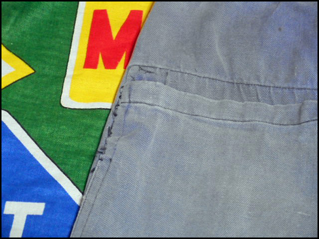 腰には針が付かないタイプのシンチバッグ(バックルバック)が付いており、特殊な作業をしていた方が履いていたと思われる左右非対称のポケット(ガチャポケ)の感じも魅力的なビンテージワークパンツです。