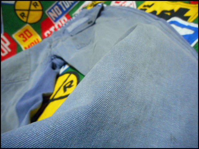 所々にシミ汚れが見られ、右腿に小穴、裾にスレ破れが見られます。その他、USED相応の着用感があります。