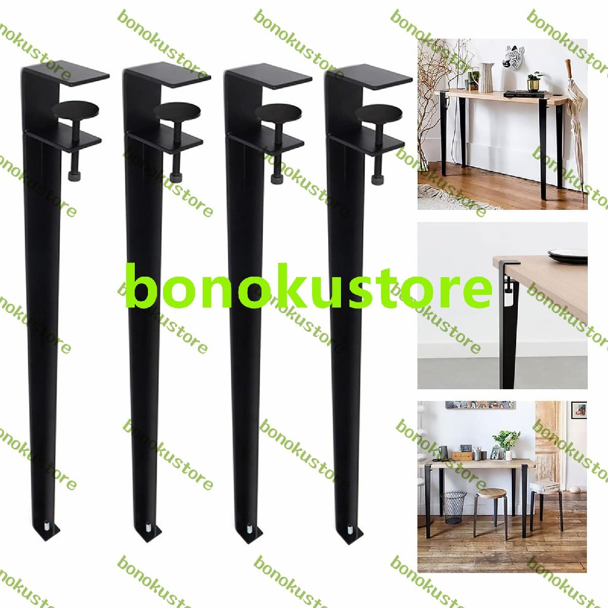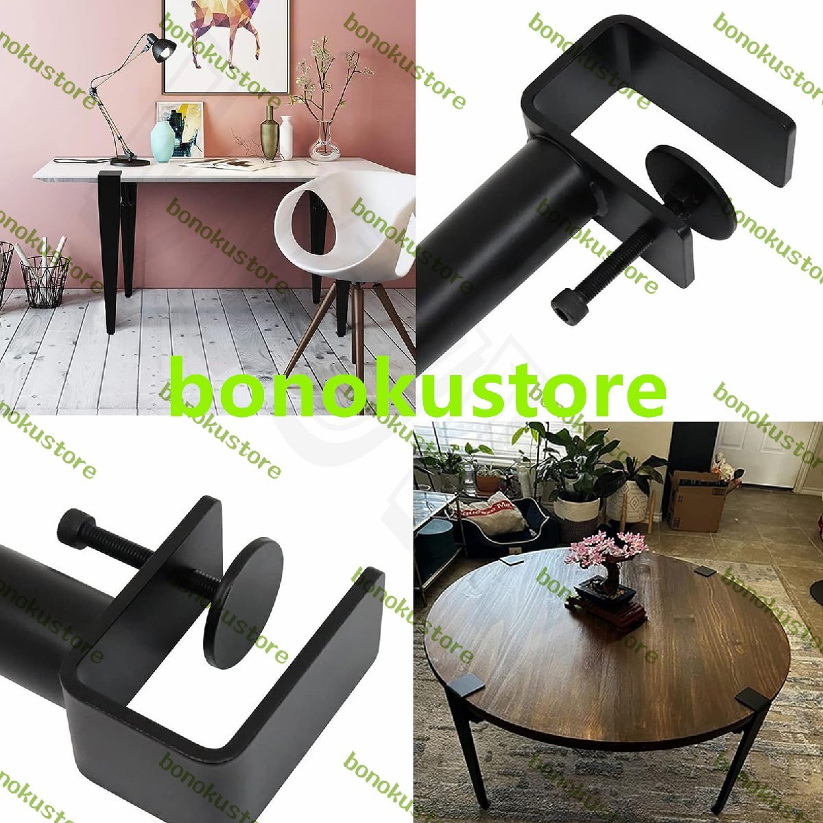 4本セット家具 テーブル脚 金属製の家具の脚 調節可能 F字型 ダイニングデスク脚 DIY テーブルクランプ脚 鉄脚 サポート脚、無孔設計のデスクトップ保護、床プロテクター付き black