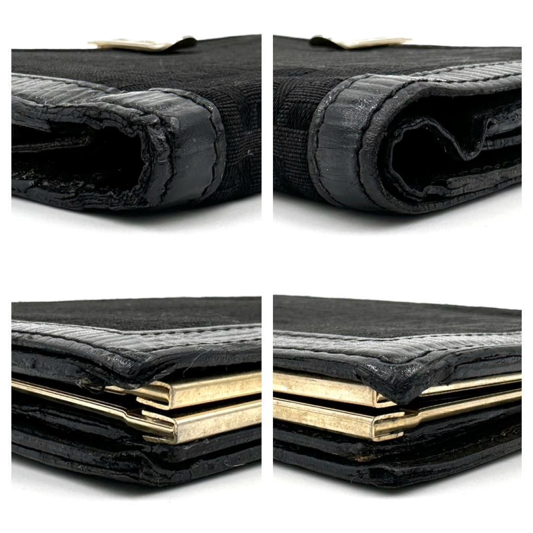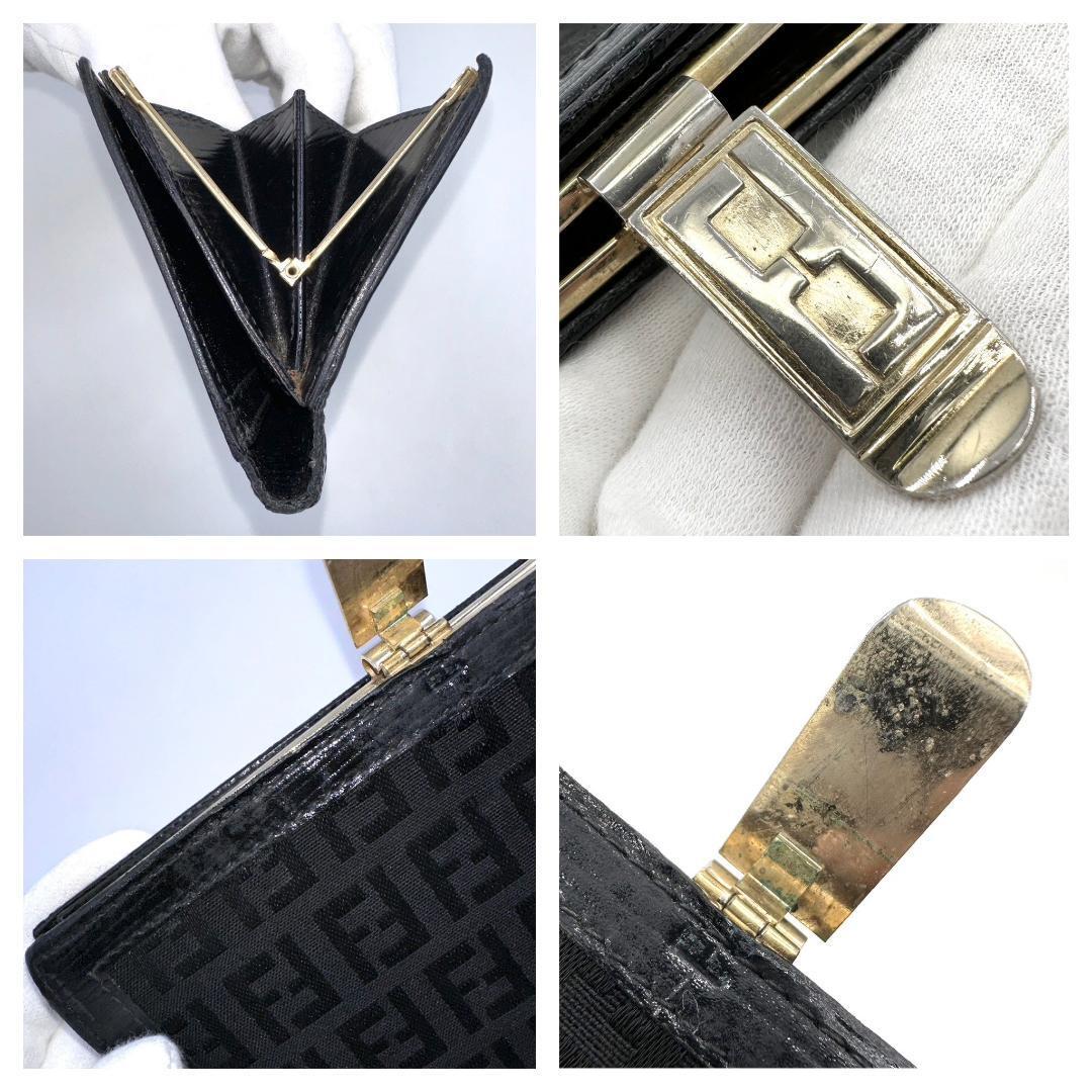 ホック部分破れかけ(お写真10枚目左下)、ホックやがま口開閉時に側面より粉吹きがございます。