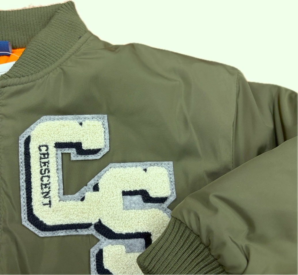 即決 防寒★新品タグ付 クレセント Crescent★ロゴ刺繍 総裏付き 中綿入り MA-1ジャケット★子供 130cm 9-10才 ¥4290