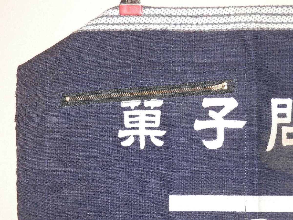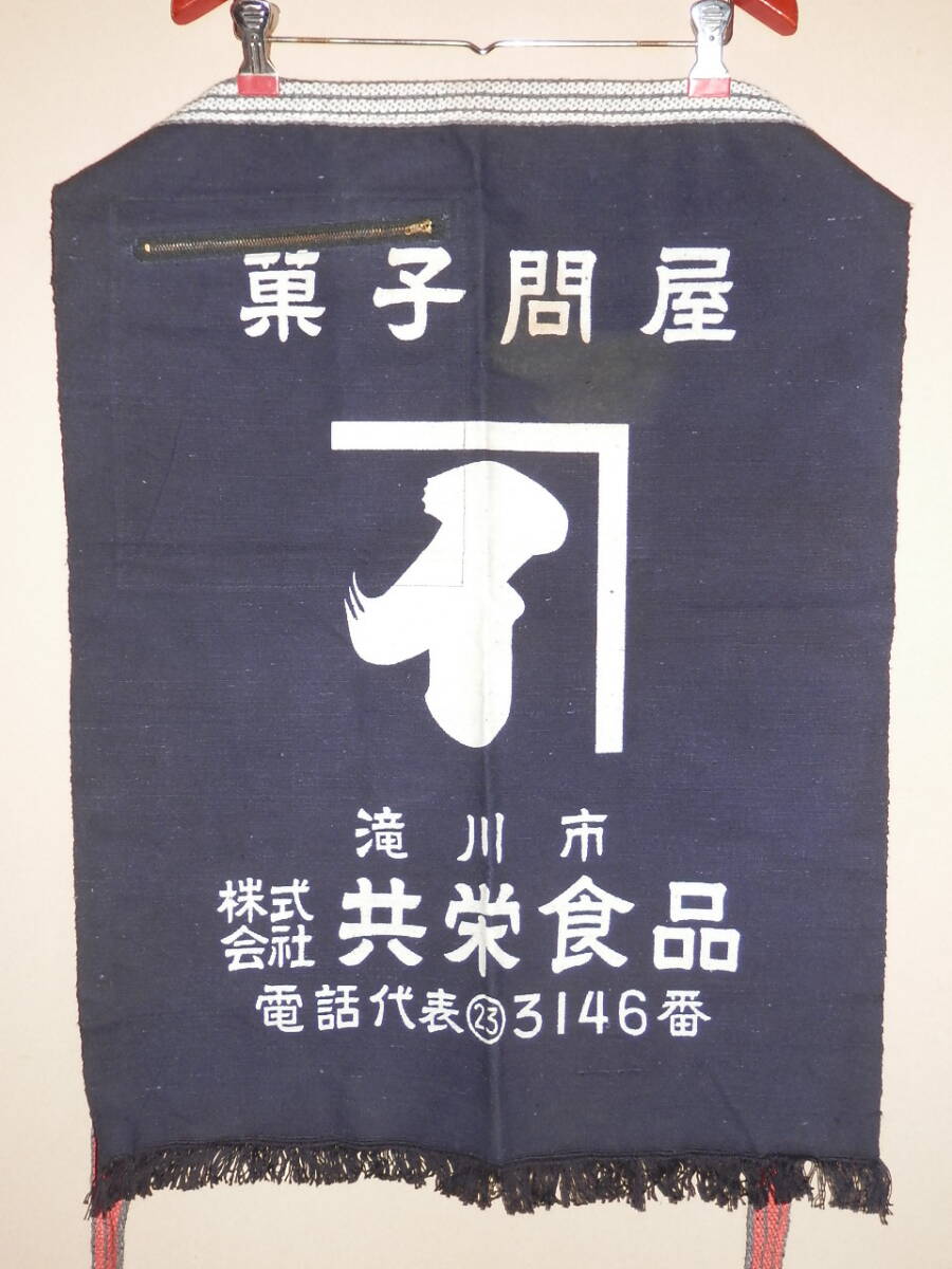 帆前掛け#97 菓子問屋 共栄食品 52x71cm ポケット付き 帆布エプロン 古布 紺色 北海道 滝川市