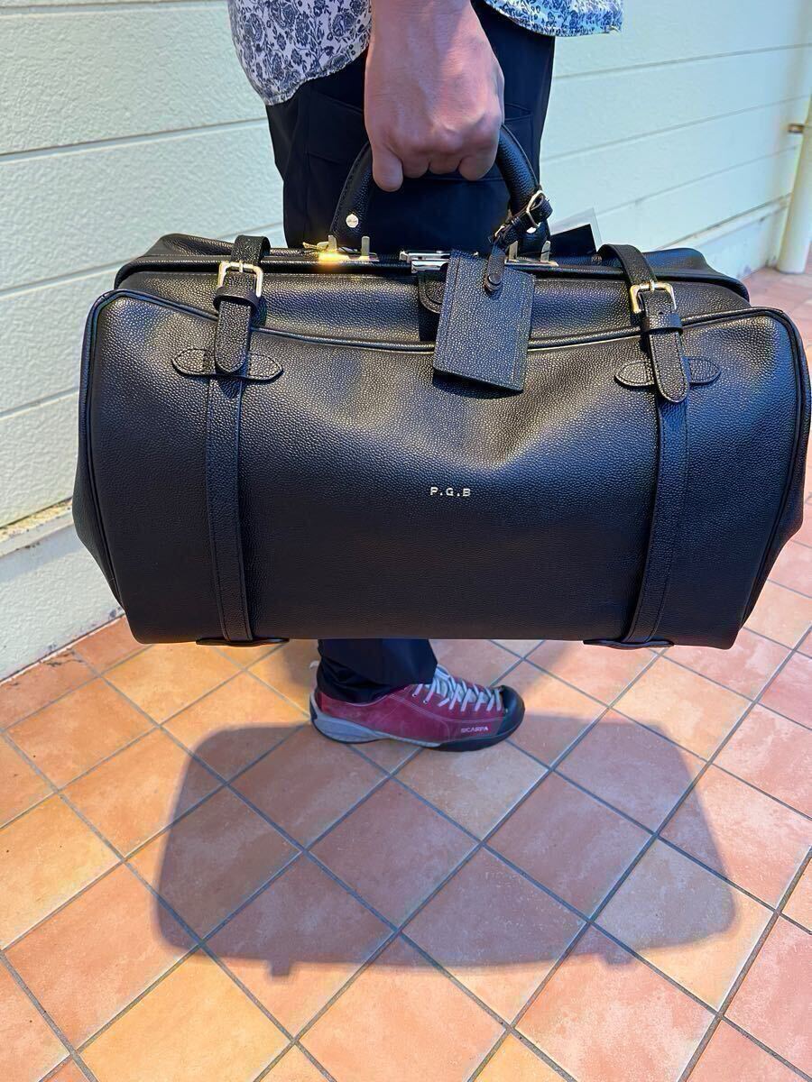 素材は国内屈指のタンナー・栃木レザー製の革で、ピット槽で20日間かけて鞣しています。タンニンを多く含むミモザで鞣したヌメ革は耐久性や放湿性が良く、最終仕上げの手前の段階でオイルを塗りこんでいるため、使うほどに独特の艶が増す経年変化を楽しめます。英国発祥と言われているスコッチグレインの型押しを施して、高級感のある上品で重厚な雰囲気に仕上げました。