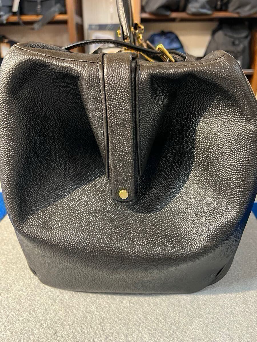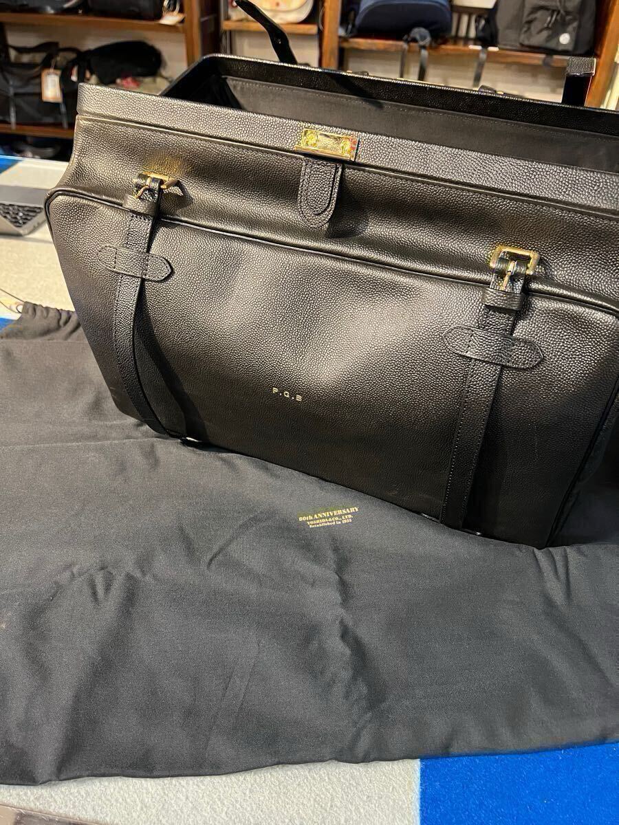 バッグ6型はフォルムを綺麗に保つために切り目仕立てのパイピングを施しており、名刺が入るラゲッジタグが付属します。A4ファイルサイズのクラッチバッグの内装は人エスエードで、電子機器を収納しても傷がつきにくい仕様です。小物5型は、札入れやコイン室などの内装に高度な職人技を必要とするベタ貼りという技法を用い、薄く漉いた2枚のコンビネーション鞣し革を丁寧に貼り合わせて形作っています。コバ部分は磨きをかけて染料を丁寧に塗りこんで美し