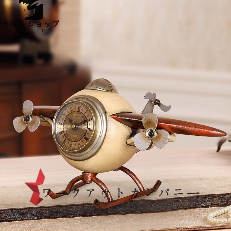 極上注目◆アメリカ式 レトロな創意的なアメリカン式置き時計 欧風の アンティーク時計 置き時計 インテリア 飛行機型