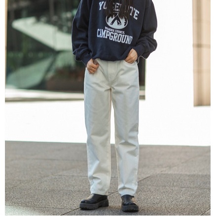 春夏はもちろん、寒い季節もオフホワイトデニムは映えますので年間を通して長く履けるジーンズです。