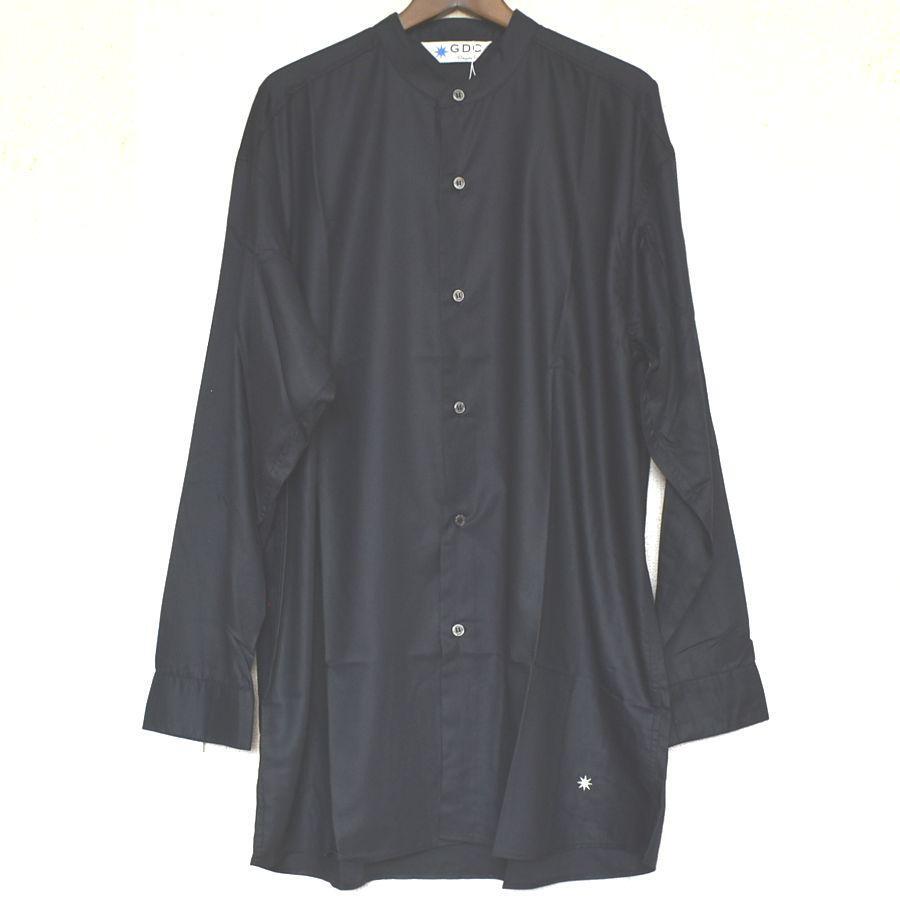 長袖 メンズシャツ S 黒 タブカラーシャツ ビッグシルエット 大きめ ロングシャツ☆GDC グランドキャニオン A670