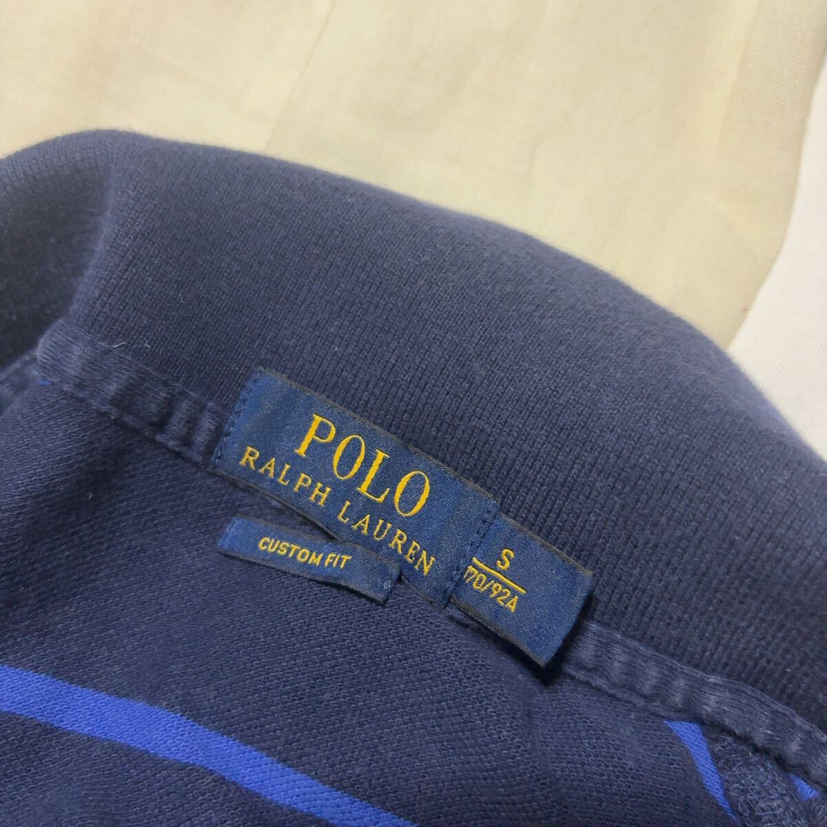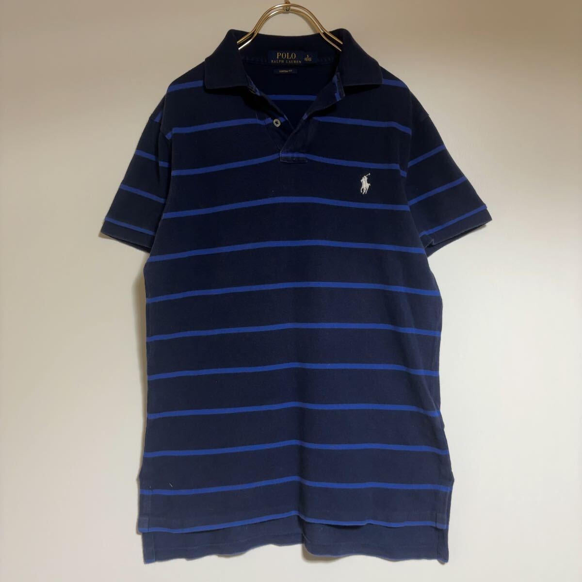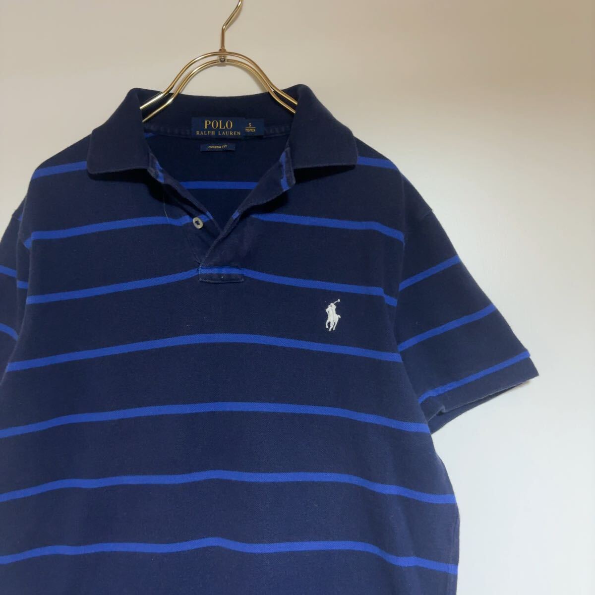 RALPH LAUREN ラルフローレン ポロシャツ ボーダー 半袖 Polo ネイビー 古着 CUSTOM FIT サイズS