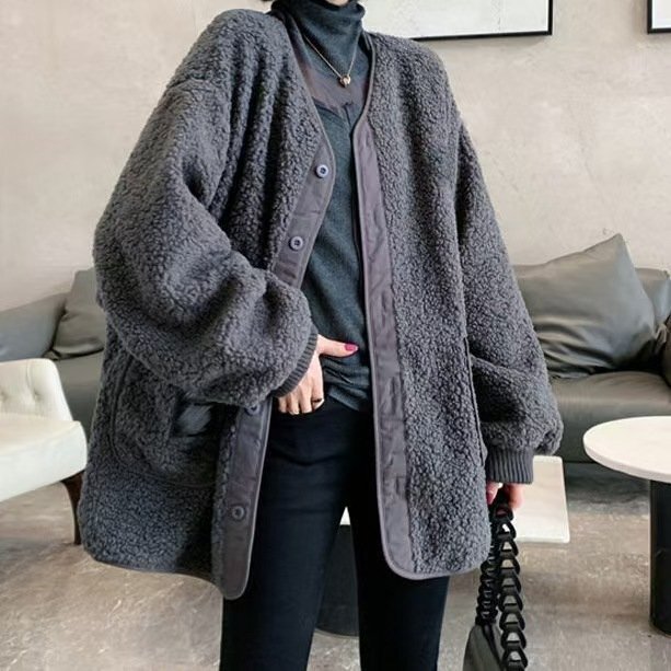 LRM5502★ボアコート アウター 厚手 ジャケット 秋冬 レディース 大きいサイズ 暖かい 長袖 無地 ゆったり