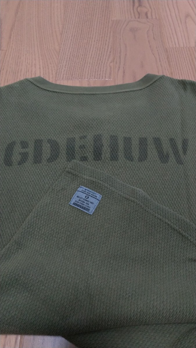 GOOD ENOUGH 長袖サーマルロングTシャツ ヘンリーネック■グッドイナフ ステンシルプリント ミリタリー グラムg 藤原ヒロシ old