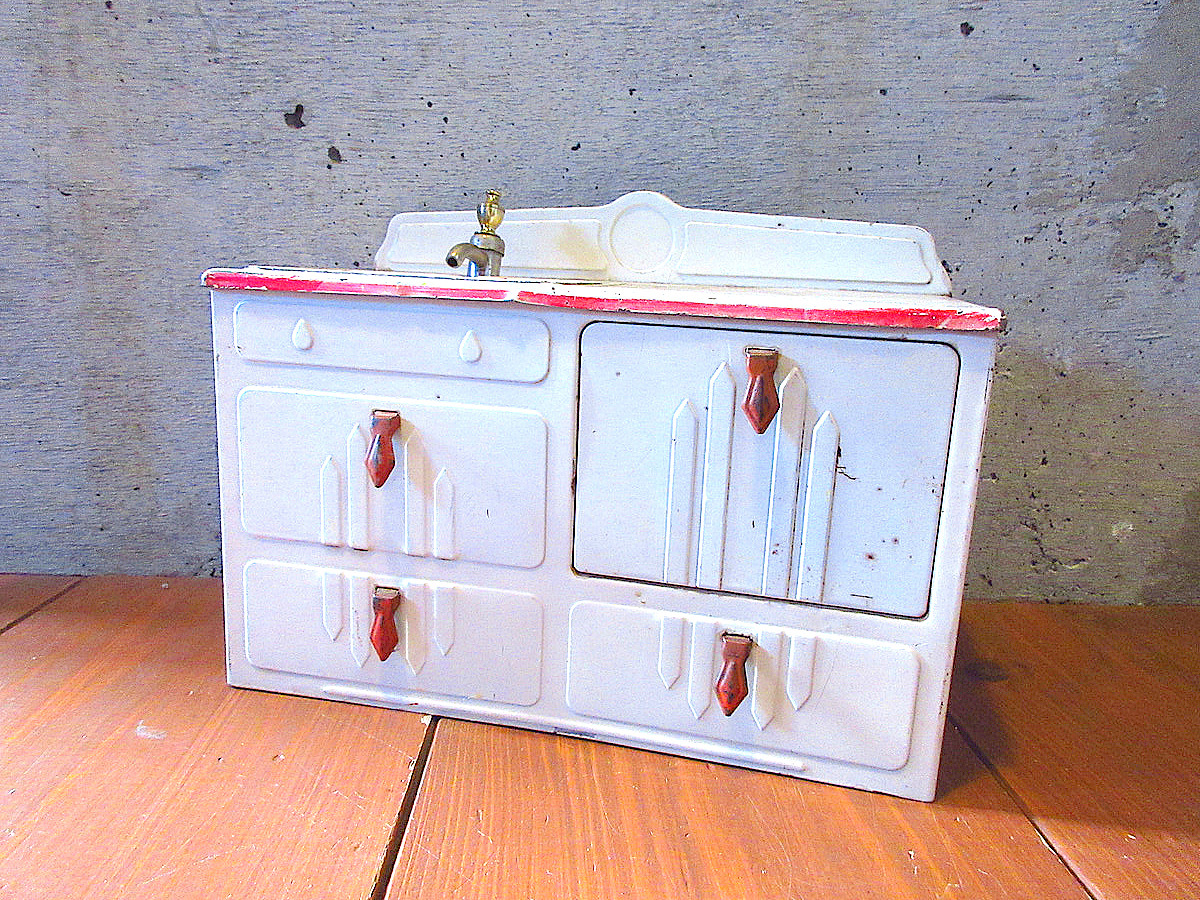 ビンテージ-60’s●ブリキミニキッチン●241209k5-otclct -1960sミニチュアおもちゃトイおままごと雑貨コレクション