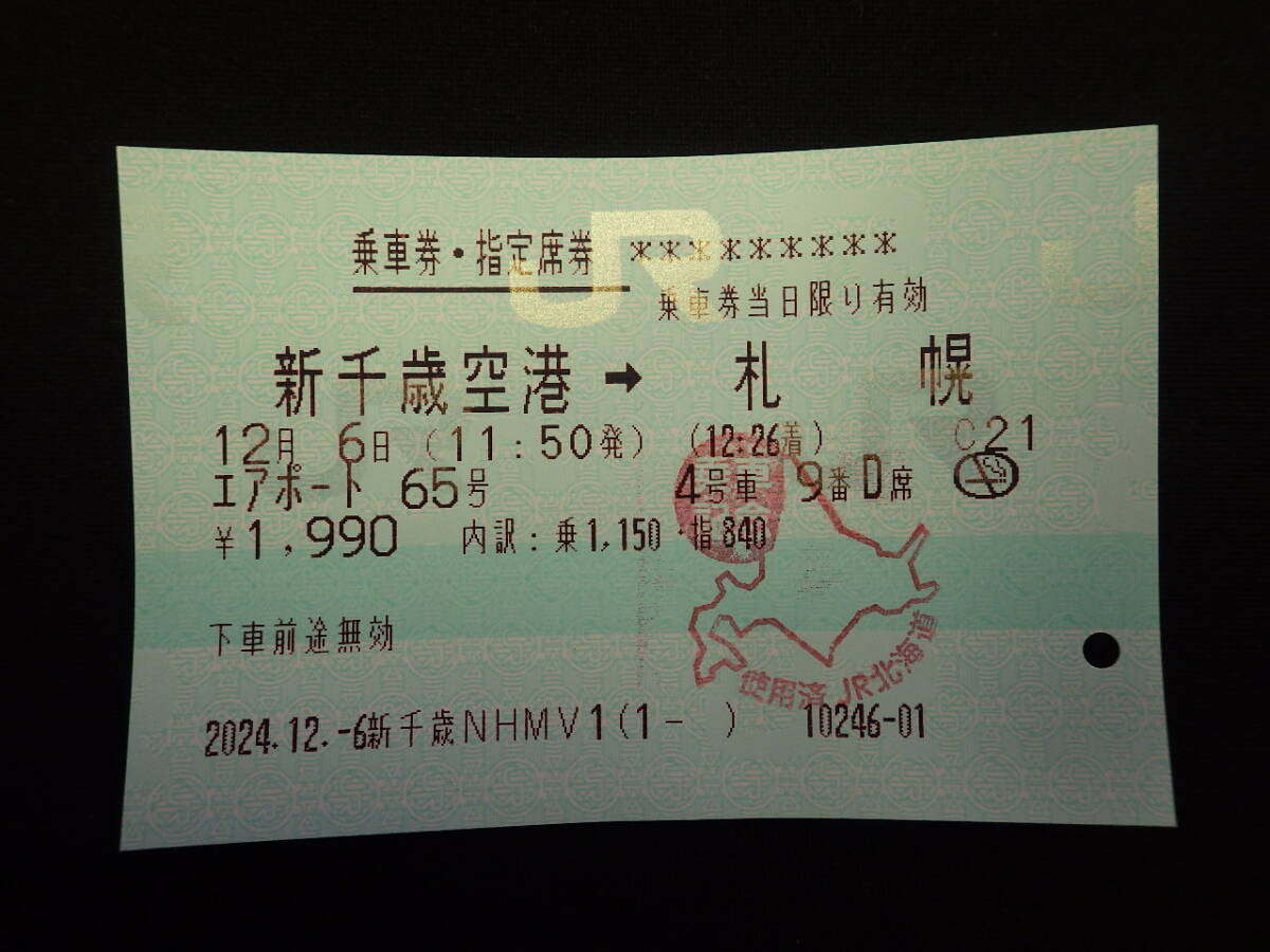 | ●○【使用済み】 JR北海道 千歳線 快速エアポート 新千歳空港→札幌 指定席乗車記念○● | |