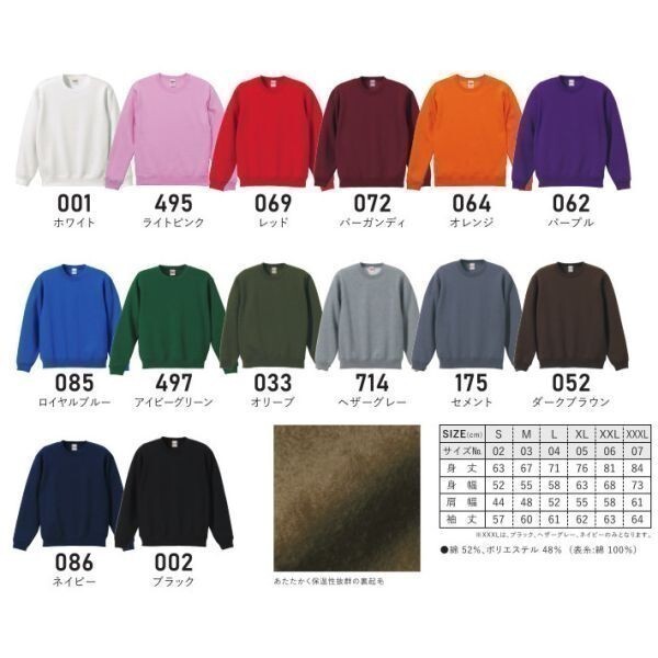 裏起毛)綿52%、ポリエステル48%