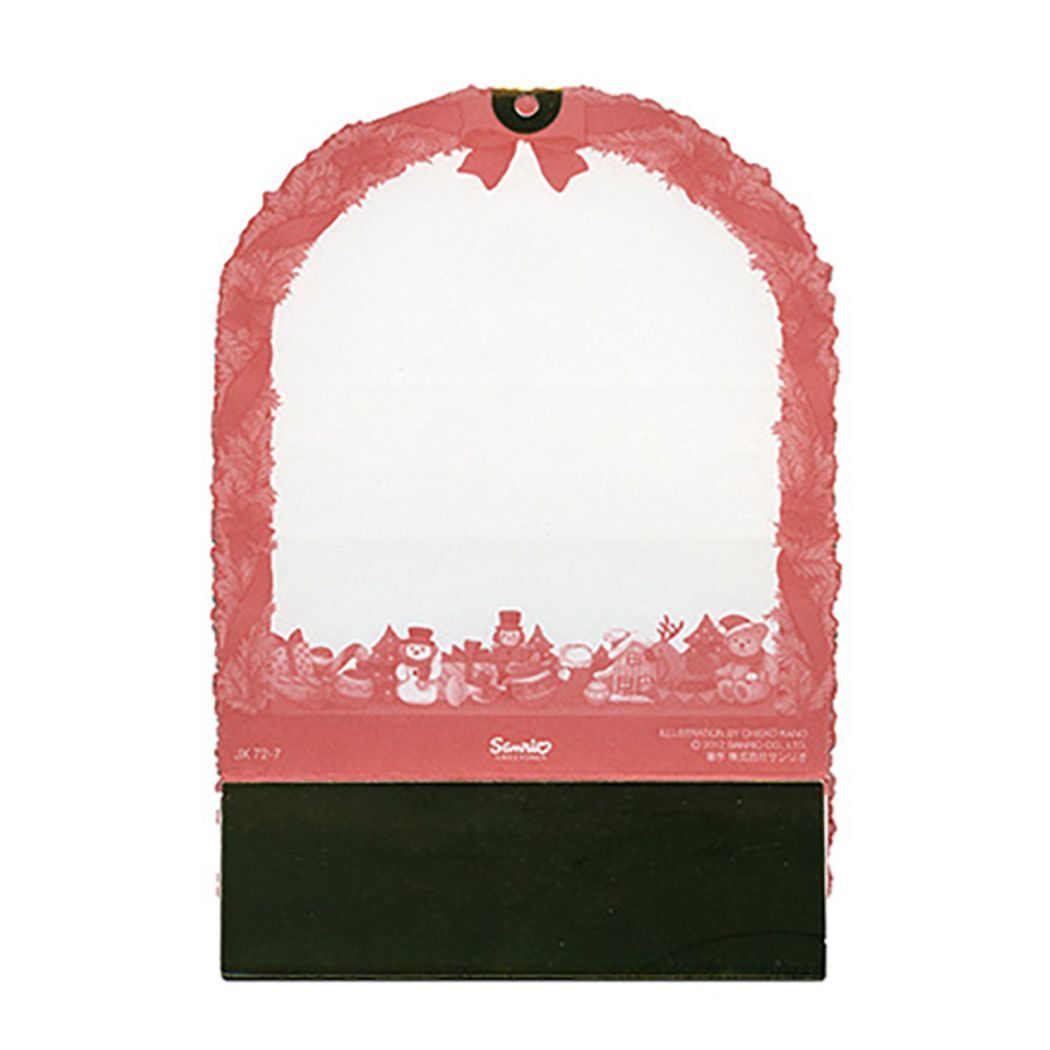 心温まるクリスマスを楽しんじゃおう MERRY CHRISTMAS贈ってももらっても楽しいかわいいクリスマスカードおもちゃがたくさん並んだクリスマスショップのショーウインドーが緻密に描かれたカードです。透明素材の窓部分に金のホログラム箔加工、カード全面に金箔加工が施された華やかな仕上がりです。立てて飾れます。カードの裏側にメッセージスペースがあります。サイズ:約113x170mmコピーライト:2012 SANRIO CO., LTD.