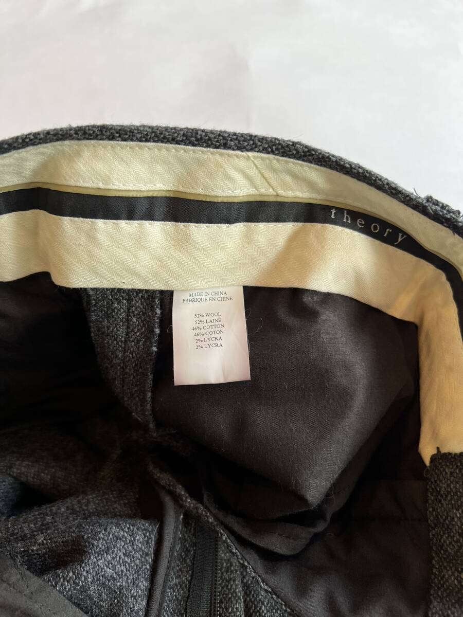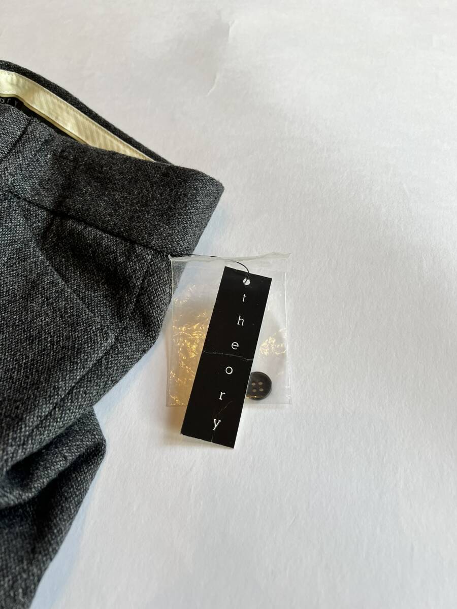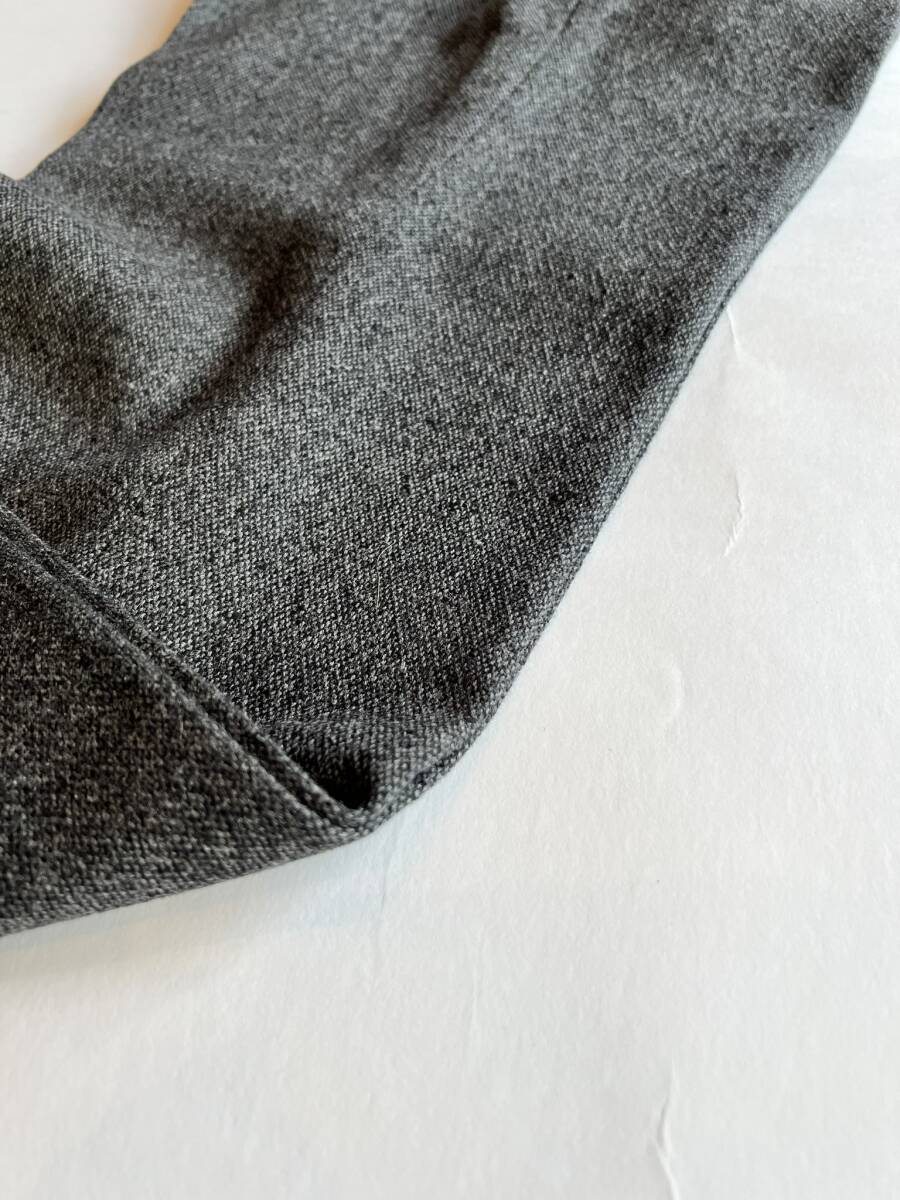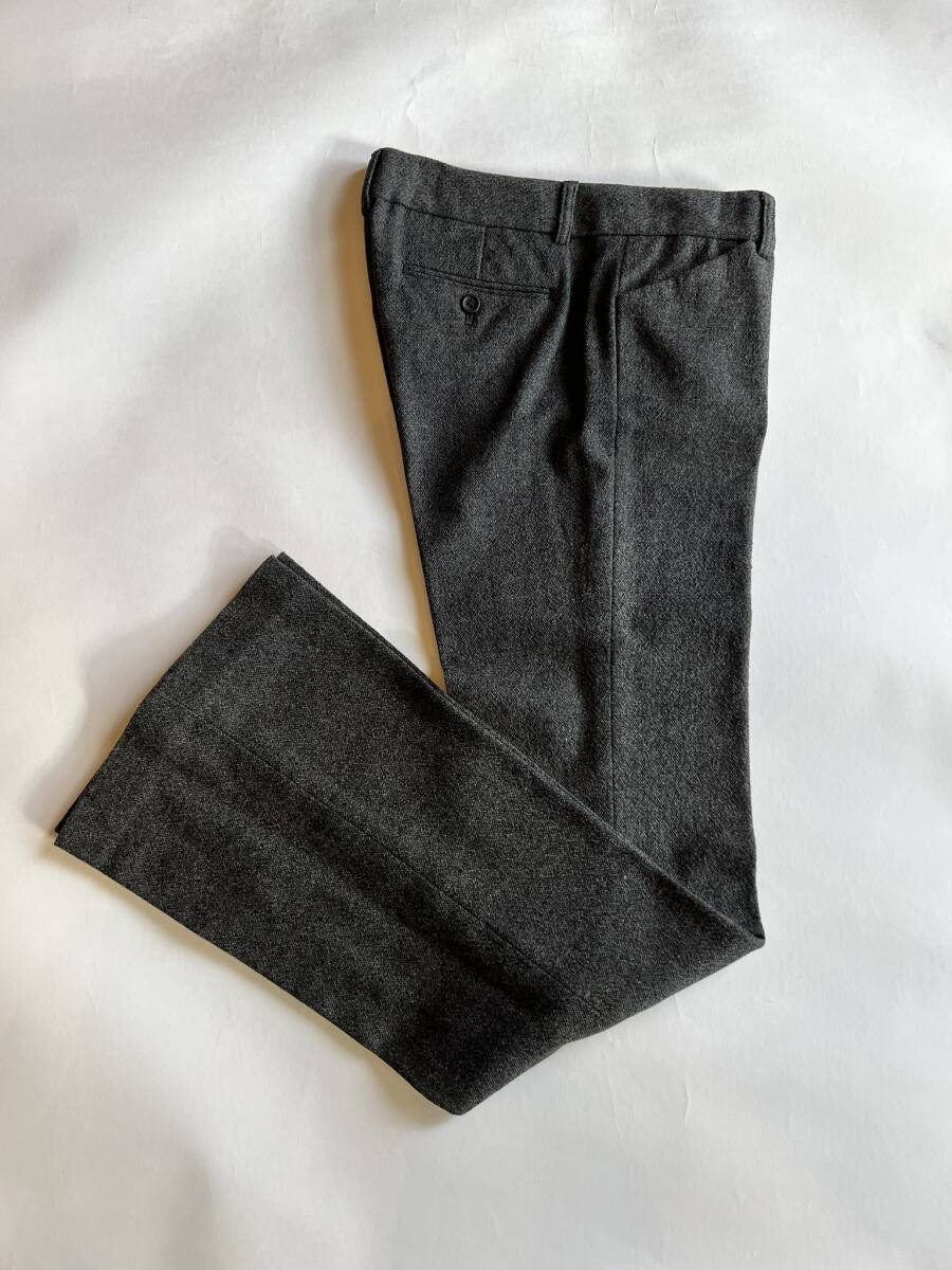 色はミディアムグレー、サイズは4素人実寸でウエスト80、股下87.5、股上19cm、渡り幅28.5cm、裾幅27cm、素材はウール52%、コットン46%、ライクラ2%になります。