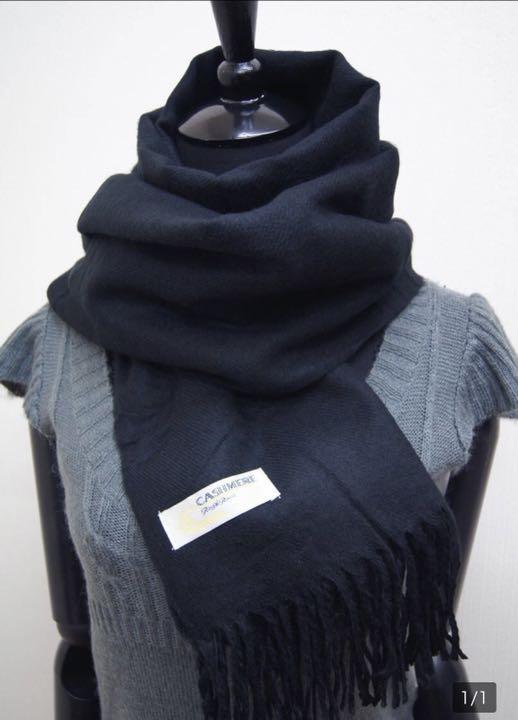 カシミア100%英国”ストール”黒〇*:..azu00c
