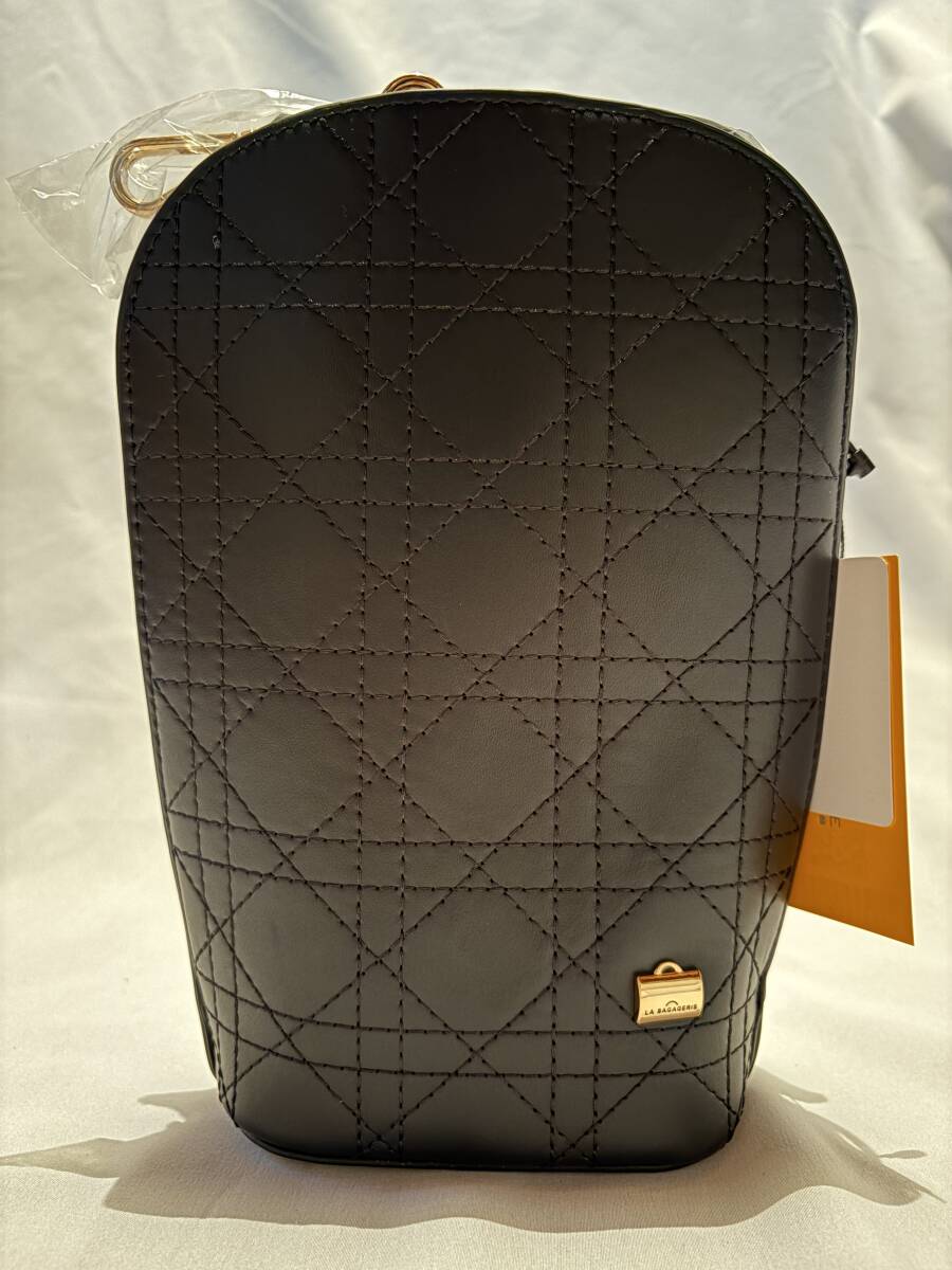 LA BAGAGERIE ラ バガジェリー 【レザー×ステッチ】ラウンドショルダー B0047-05 ブラック 未使用 バッグ ポーチ 本革