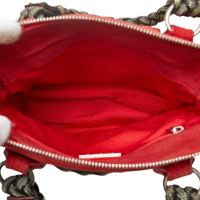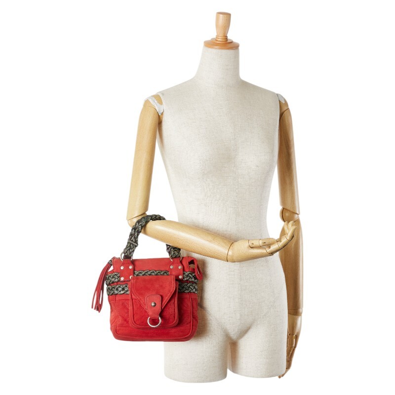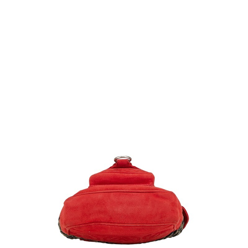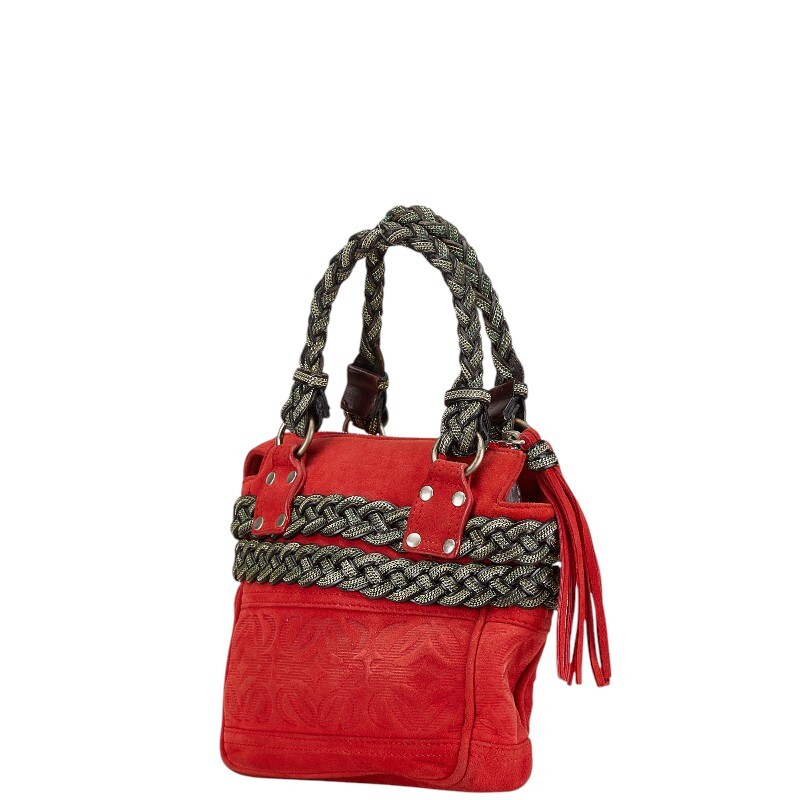 ロエベ アナグラム チェーン デザイン ハンドバッグ レッド グリーン スウェード レディース LOEWE 【中古】