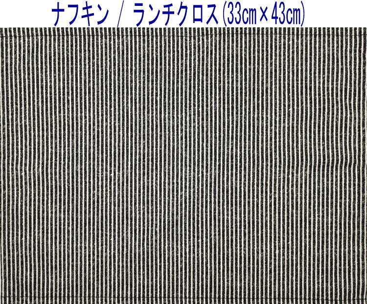 ナフキン・ランチクロス(33cm×43cm)長方形【デニム調 ストライプ柄 ブラック】ランチマット ランチョンマット 日本製 シンプル ヒッコリー