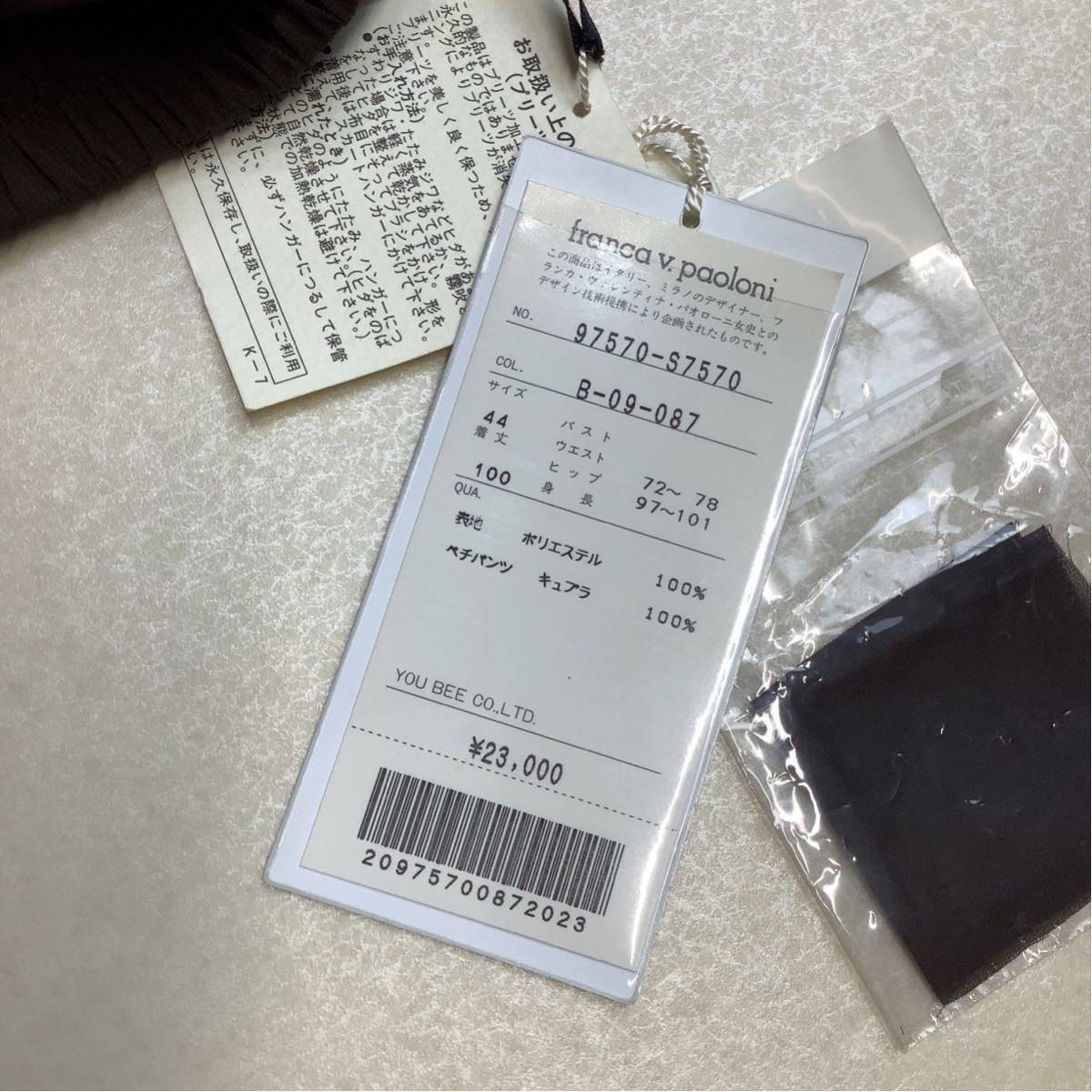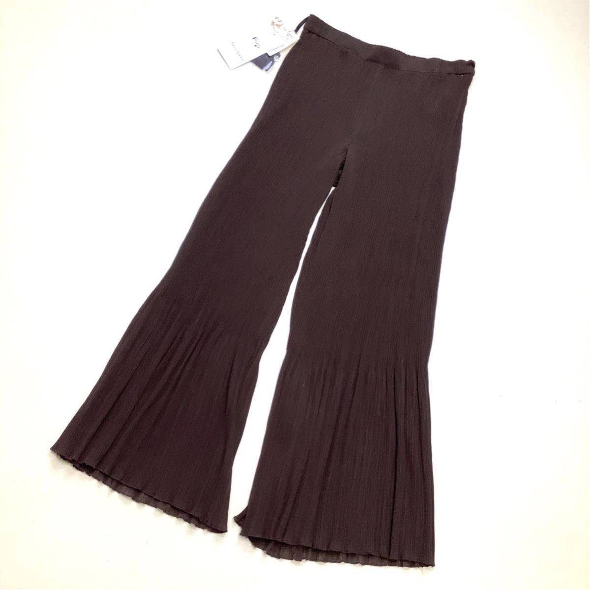 新品 タグ付き franca v paoloni フランカヴァレンティテ パオローニ プリーツ パンツ 大きいサイズ 44 XL以上 ブラウン 定価¥23000
