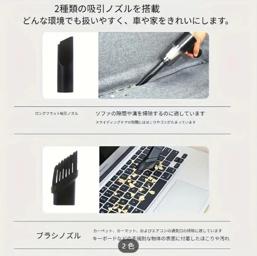 ハイパワー携帯用車用掃除機 - ポータブル、ワイヤレス充電ミニダスター、車&家庭用、USB充電式、ペットの毛&デスクトップ掃除に最適