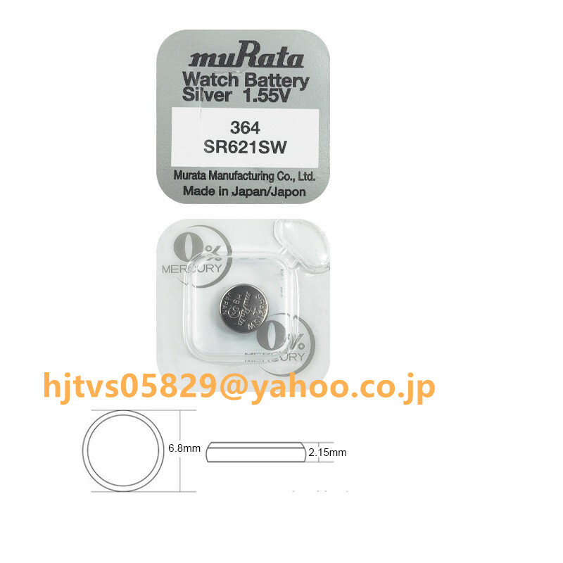 muRata 364 SR621SW SONY ソニー 364 SR621SW 酸化銀ボタン電池 バッテリー 逆輸入ボタン電池 互換品 電池 コイン電池 1.55V 5個入 日本製