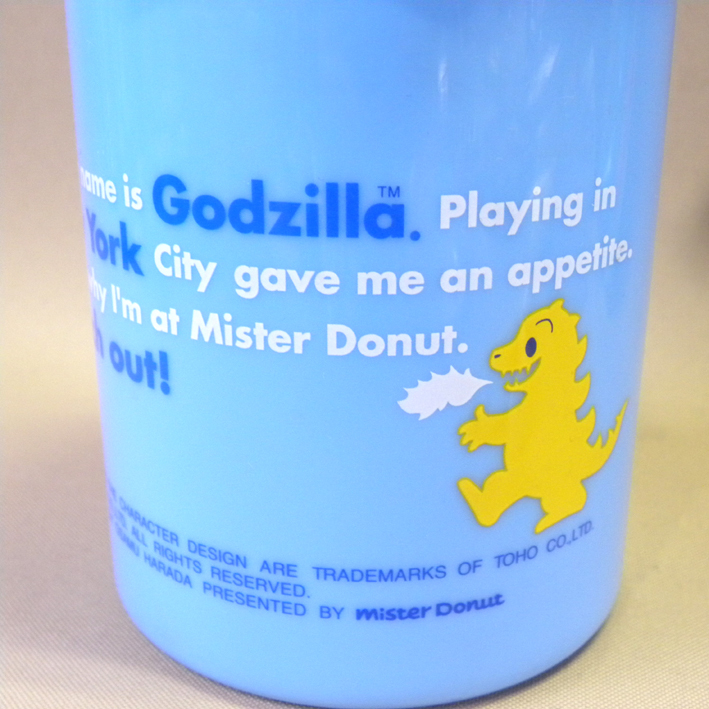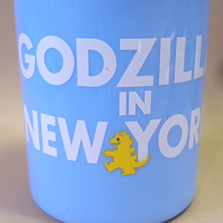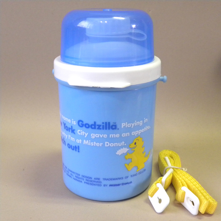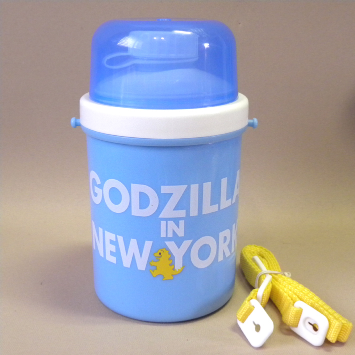 ミスタードーナツのノベルティグッズ「ゴジラ・イン・ニューヨーク 水筒」未使用品です。高さ約15.5cmです。