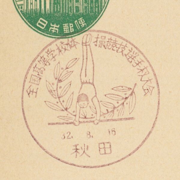 記念印☆全国高等学校体操競技選手権☆秋田・S32.8.16