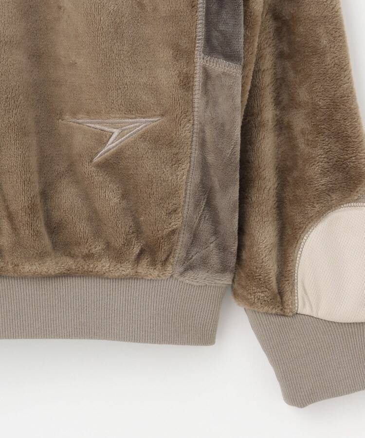 生地特有の優しい肌触りと、保温性も兼ねそろえたフリース。袖口と裾にはリブで切り替えた安心仕様で、1枚でもアウターのインナーとしても◎。ボア同色の瞬足ロゴ刺繍が高級感を演出してくれます。