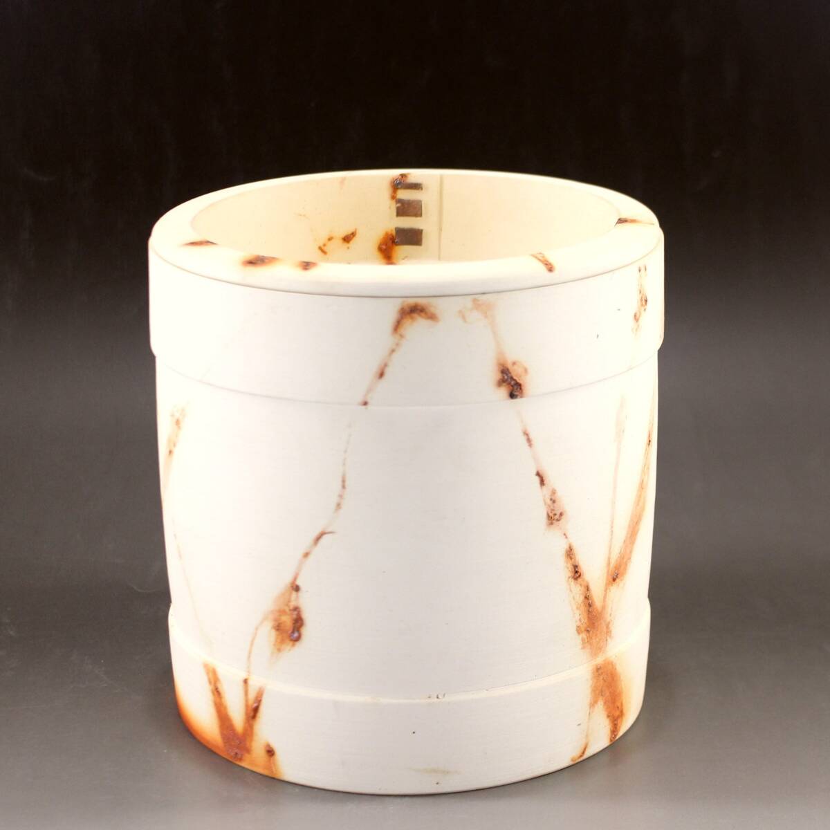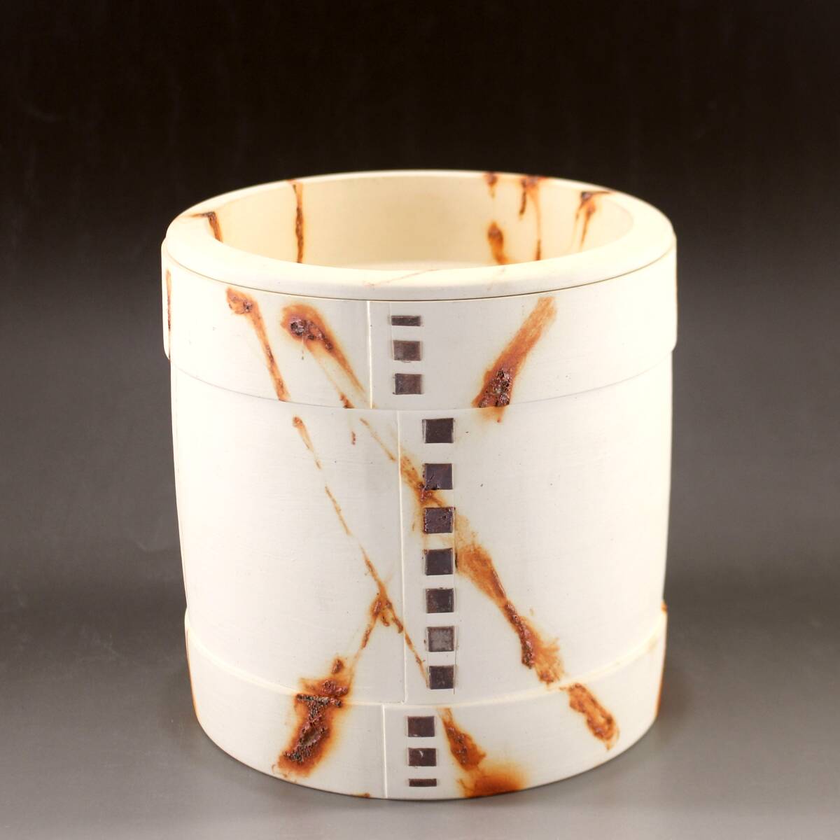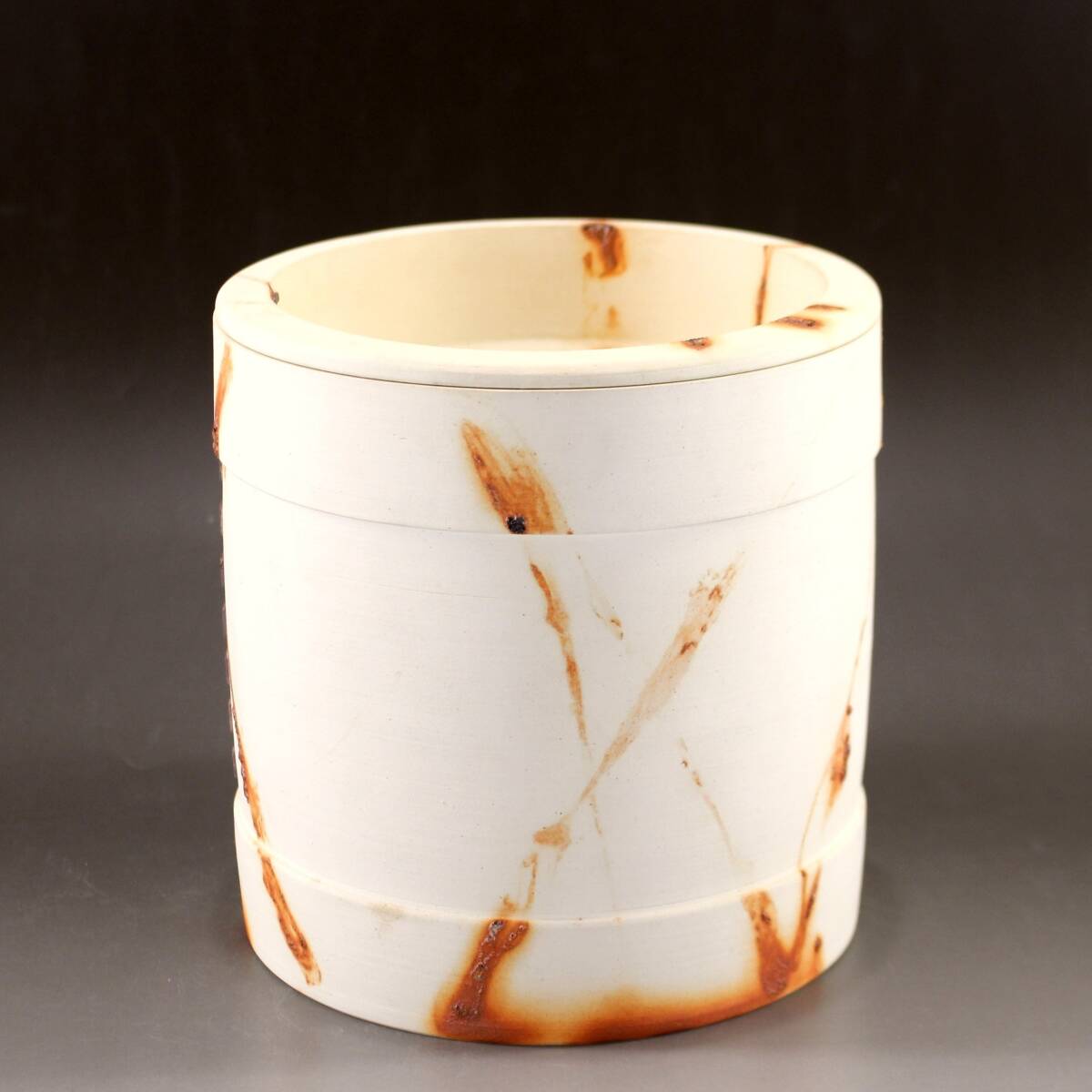 【宮川香雲】 火襷 緒桶 水指 共箱 素焼 エックス クリスマス X'mas 茶道具
