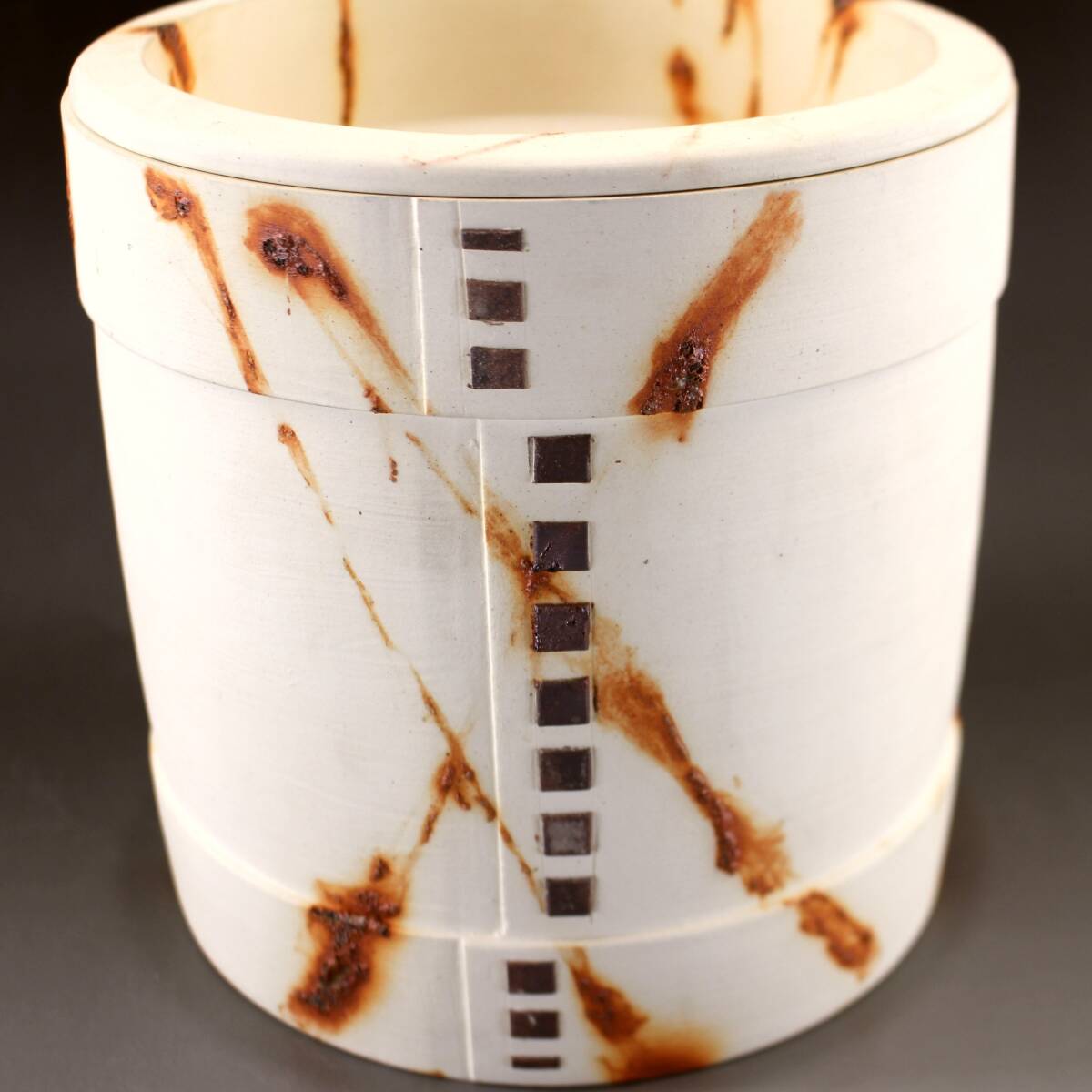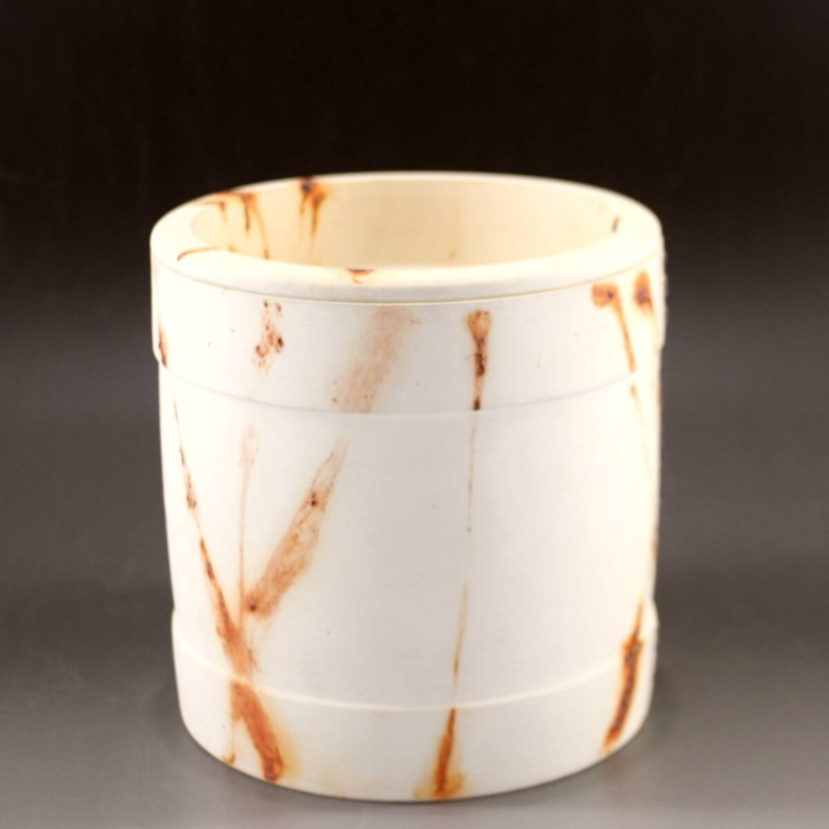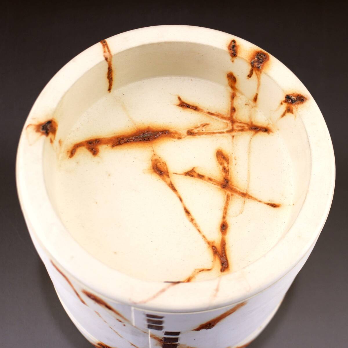 【宮川香雲】 火襷 緒桶 水指 共箱 素焼 エックス クリスマス X'mas 茶道具
