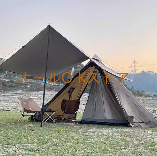 注意: 写真のストーブ、椅子、日よけ (フライシート、四角いターポリン) などは撮影用アクセサリーとして使用。※テントには含まれていません。