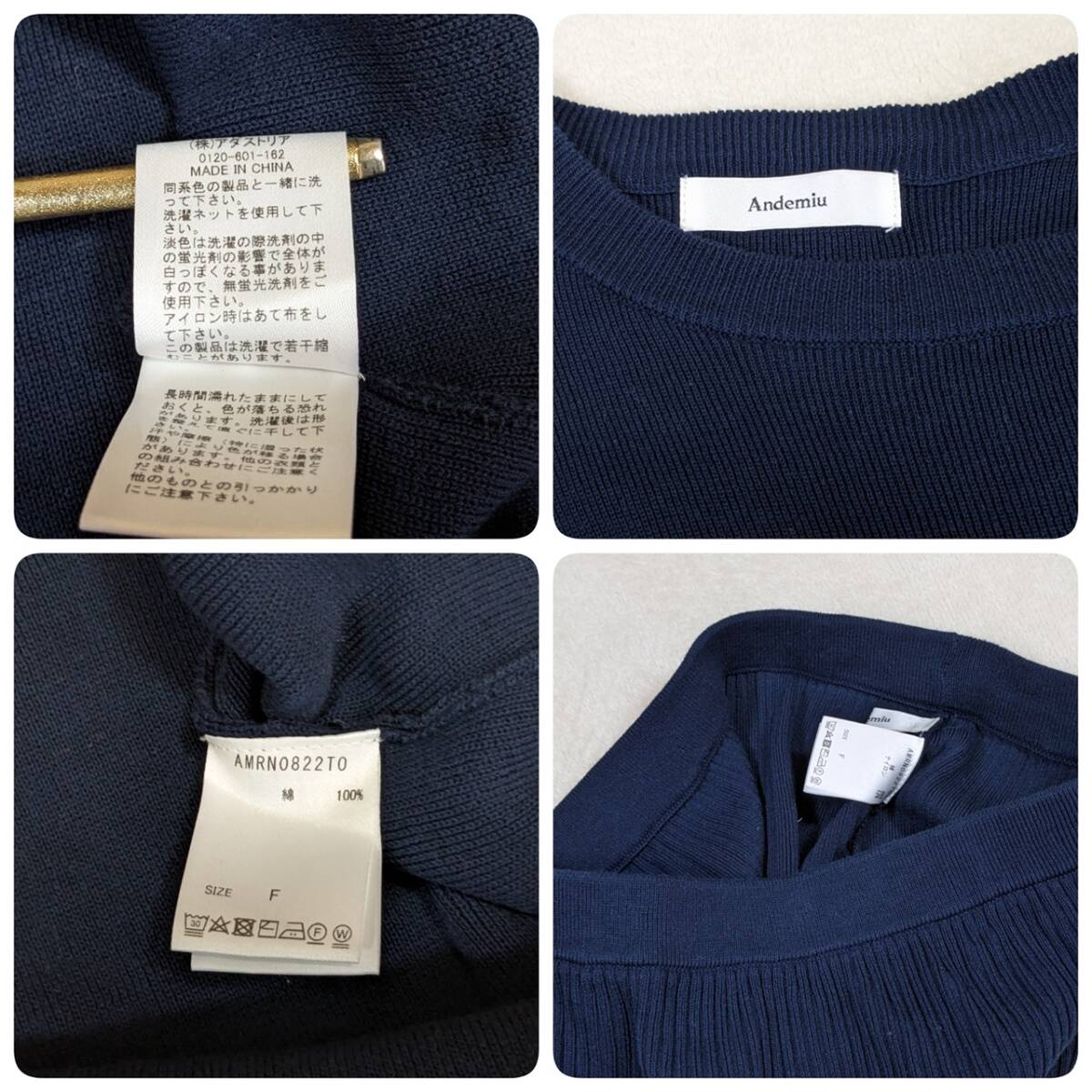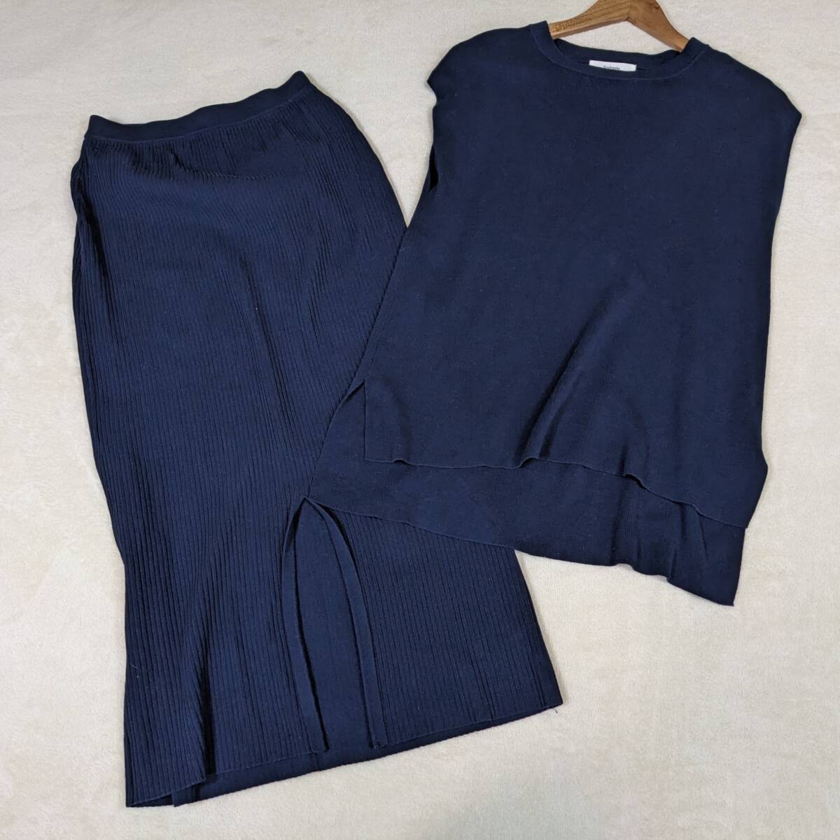 【アンデミュウ】ニット セットアップ セーター スカート ネイビー F 綿 コットン