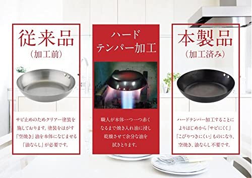 フライパン・日本製 スイト 28cm 66004・・Size:28cmStyle:フライパン・サイズ:約28.0×46.0×10.5cm(深さ6.0cm)底面径約20.5cm・本体重量:約1160g・素材・材質:本体/鉄製、取っ手/アルミ・フェノール樹脂・原産国:日本・表面加工:高温熱処理加工説明 商品紹介 職人がこだわった本格仕上げで「こびりつきにくく」「サビにくい」鉄フライパン 独自の加工方法の「ハードテンパー加工」で使いはじめのつかいにくさ解消 200V、IHクッキングヒーター(電磁調理器)対応商品。IH以外の熱源(ガス・シーズヒーター・ハロゲンヒーター等)にも対応 熱伝導率が良く、保温性が高い鉄の特性で食材をふっくらと焼き上げることが出来る 鍋肌に油がしっとりなじみ、余分な「油分」「水分」が食材に戻らないから美味しく調理出来る 使い込めば使い込むほど油なじみが良く、焦げ付きにくくなり、長く使うほど愛着がわく より ●職人がこだわった本格仕上げで「こびりつきにくく」「サビにくい」鉄フライパン ●独自の加工方法の「ハードテンパー加工」で使いはじめのつかいにくさ解消 ●200V、IHクッキングヒーター(電磁調理器)対応商品。IH以外の熱源(ガス・シーズヒーター・ハロゲンヒーター等)にも対応 ●熱伝導率が良く、保温性が高い鉄の特性で食材をふっくらと焼き上げることが出来る ●鍋肌に油がしっとりなじみ、余分な「油分」「水分」が食材に戻らないから美味しく調理出来る ●使い込めば使い込むほど油なじみが良く、焦げ付きにくくなり、長く使うほど愛着がわく