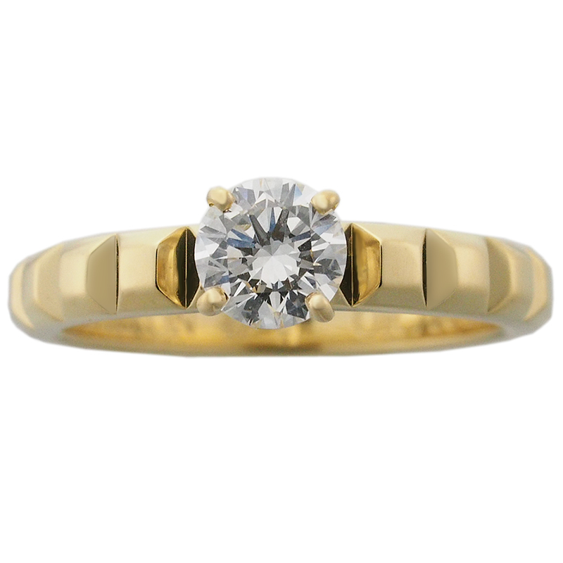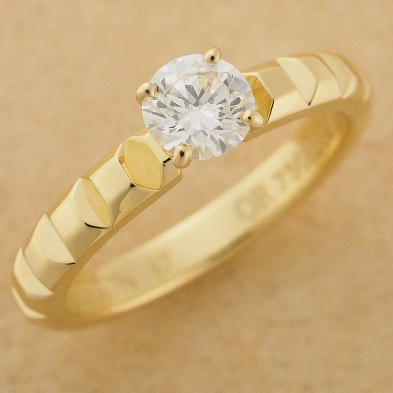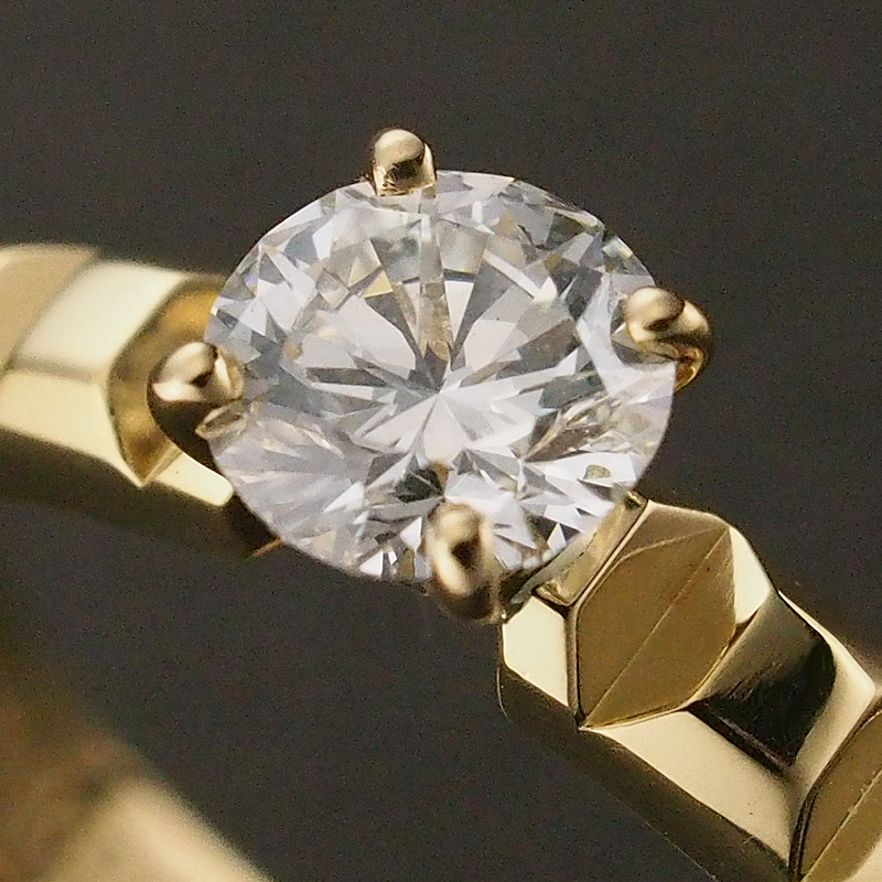 備考:創業の地であるパリの街とヴァンドーム広場を象徴するクル・ド・パリに厳選されたワンポイントダイヤをあしらった、18金イエローゴールド製の「キャトル クル ド パリ ソリテール」リングです。ダイヤのカラー【F】クラリティ【VVS1】カット【Very Good】です。新品仕上済。