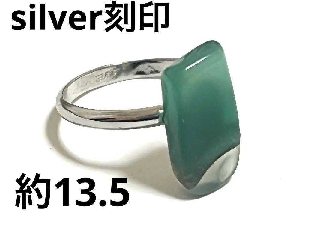 シルバー 緑色の石 リング 約13.5サイズ silver刻印 天然石 ヴィンテージ