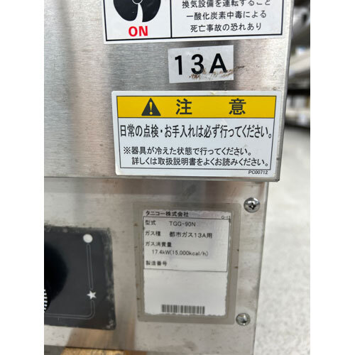 【業界最長1年保証】ガスグリドル タニコー TGG-90N 都市ガス 業務用 中古/送料別途見積