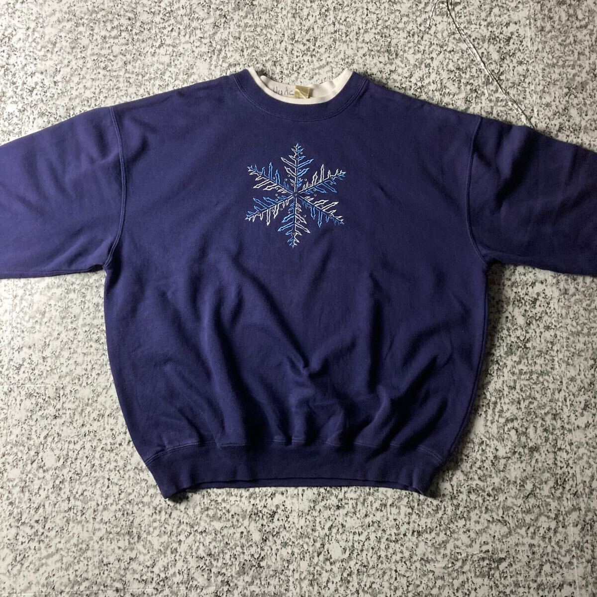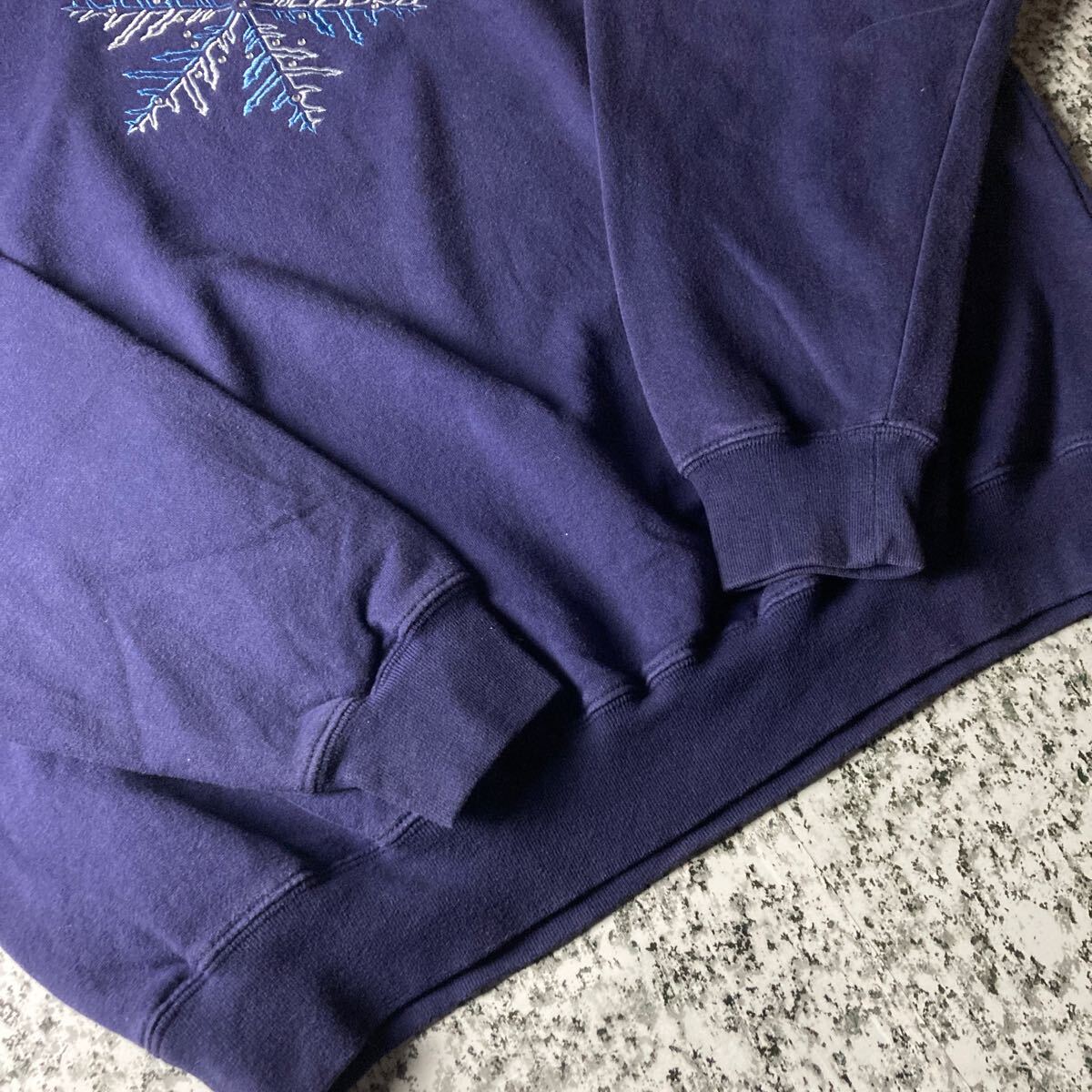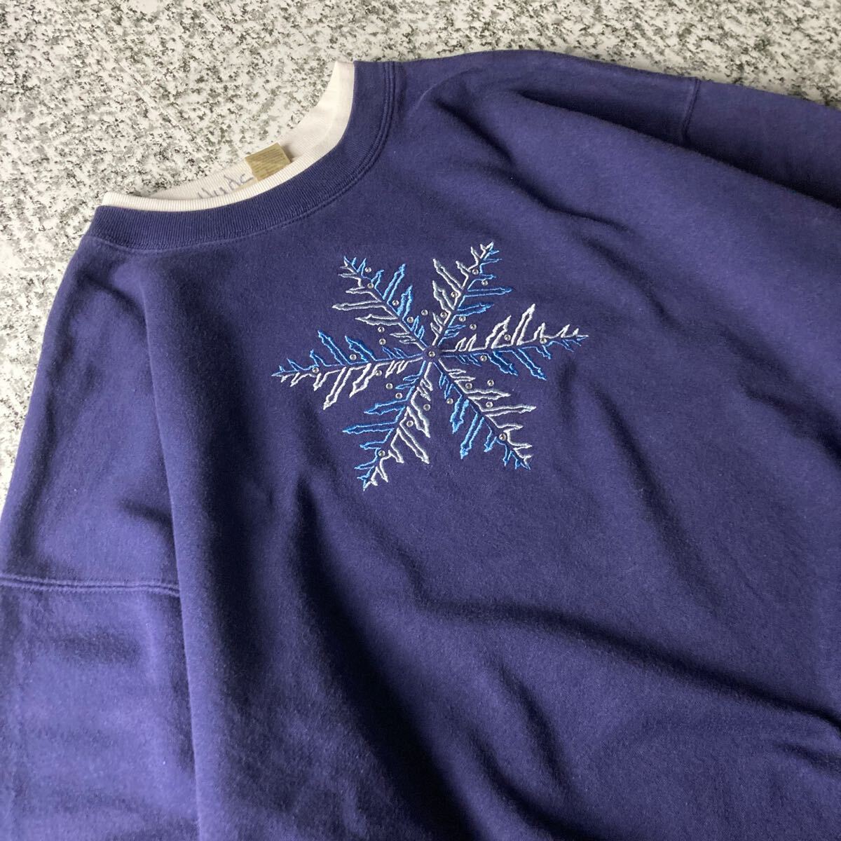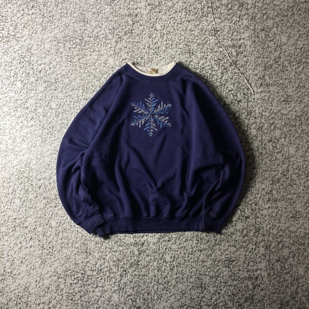 【90sオールド】結晶 ラインストーン Wネック レディーススウェット 古着 ネイビー Lサイズ ヴィンテージ トレーナー