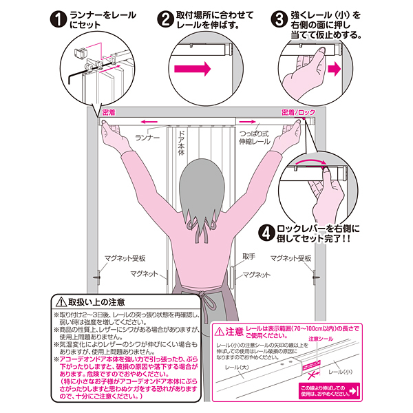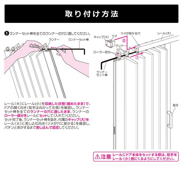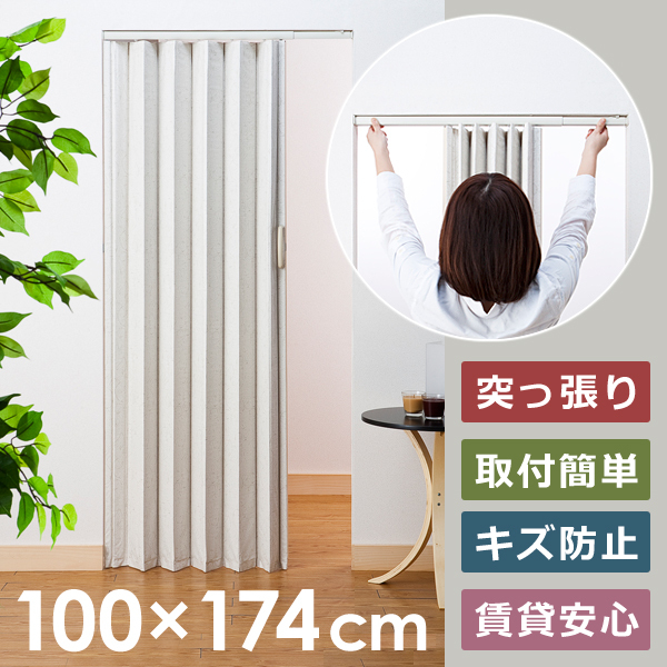 ・壁を傷つけずに取付けできるツッパリ式アコーディオンドア